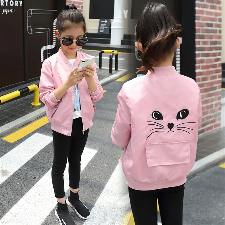 Куртки для девочек 10-12 лет; Сезон осень-весна; Детские бейсбольные куртки с рисунком; Модная одежда для девочек-подростков