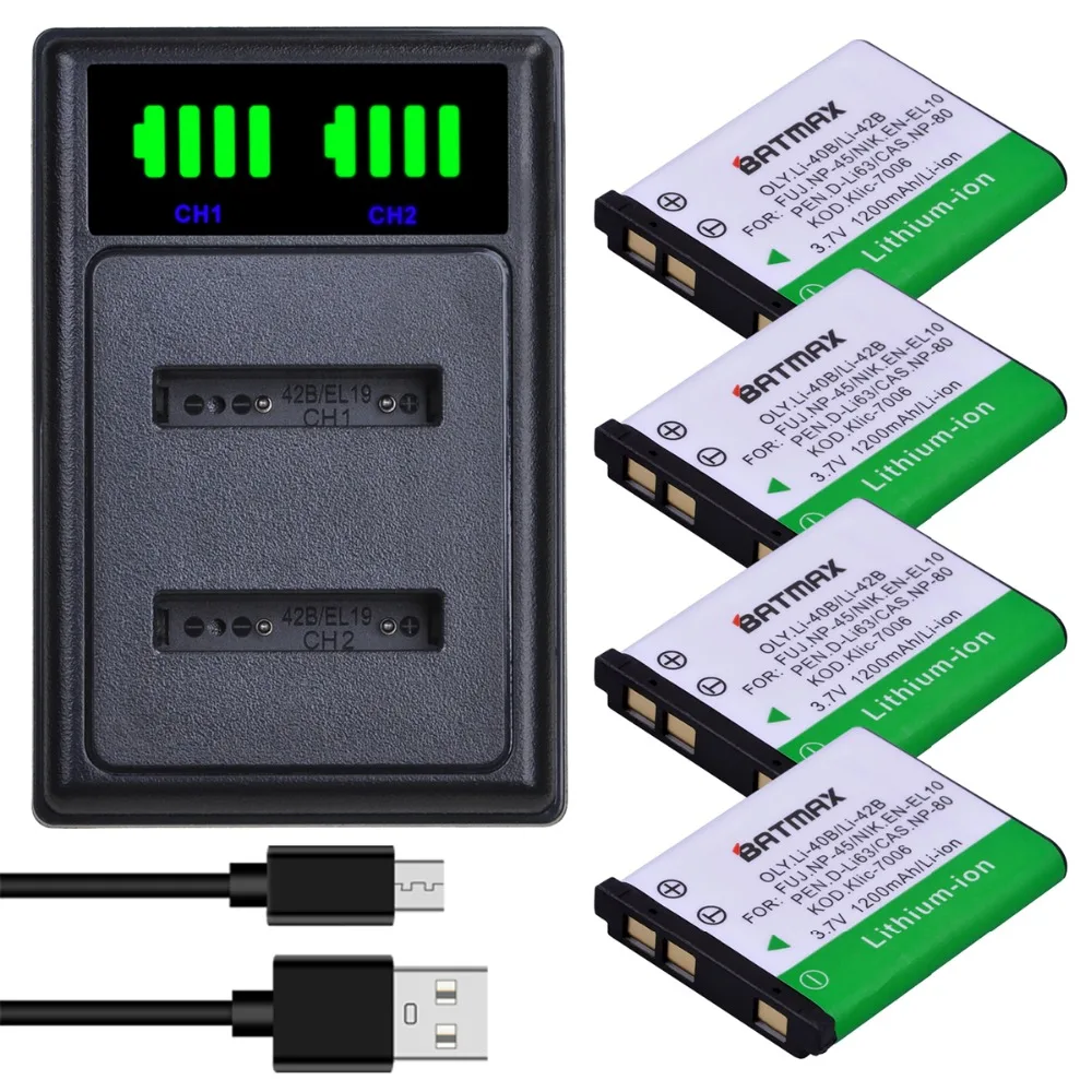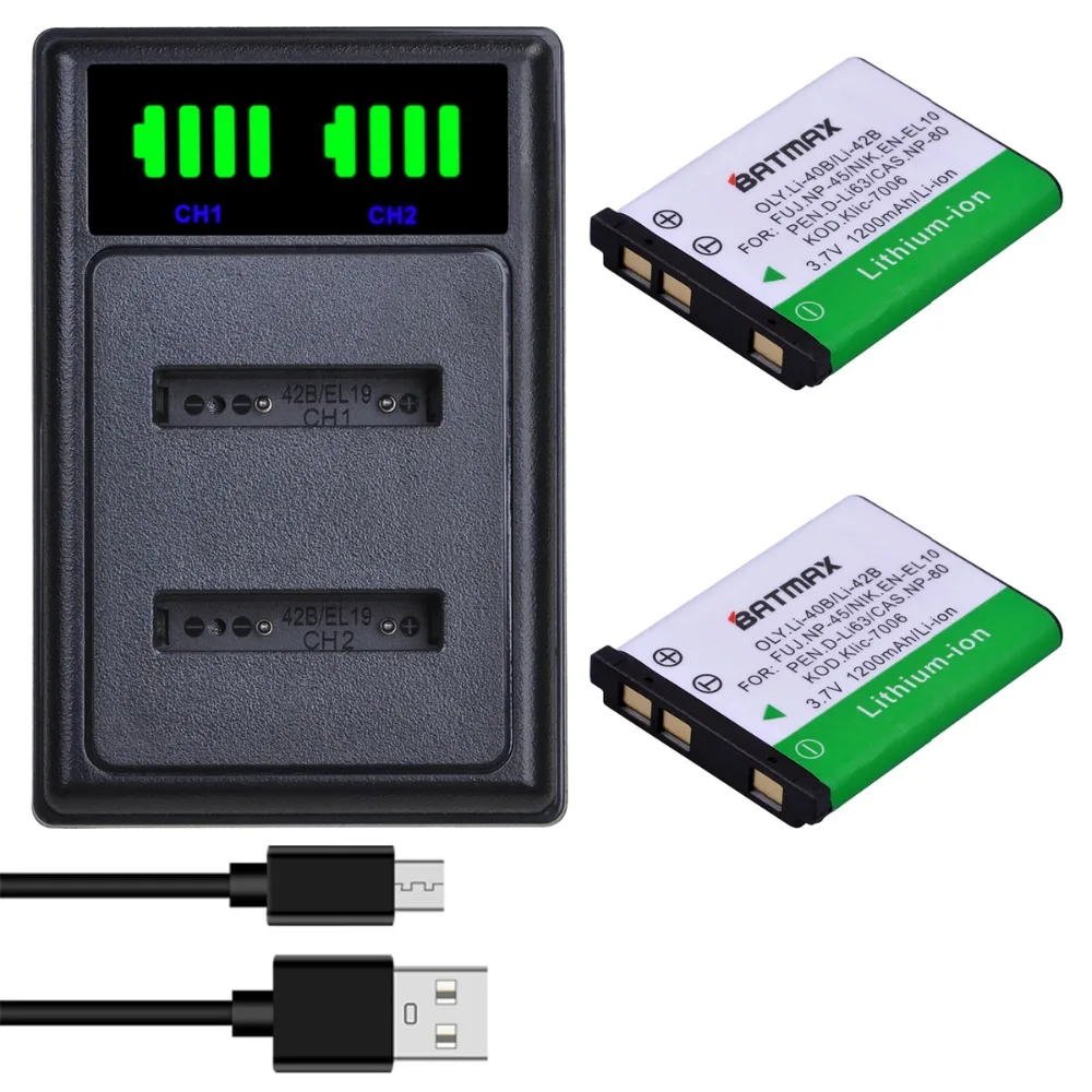 Внешняя Аккумуляторная Батарея Batmax 1200 мАч и двойное зарядное устройство USB со светодиодной подсветкой для Olympus, для FUJI FILM, fuji Li-40B NP 45 NP45 NP 45A 45B 45S