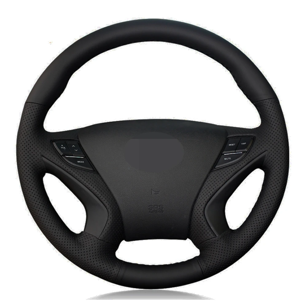 Чехол рулевого колеса автомобиля Сделай Сам сшитая вручную черная искусственная кожа для Hyundai Sonata 8 2011 2012 2013 2014
