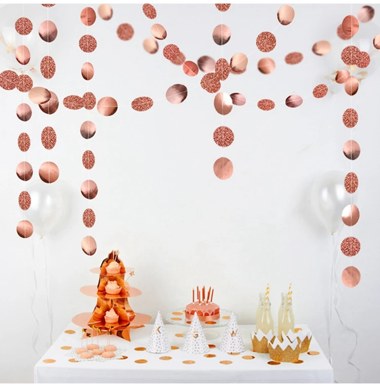 4 м, Золотая, серебряная, розовая, Золотая Круглая Бумажная гирлянд...