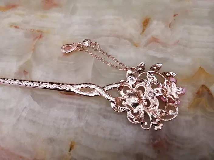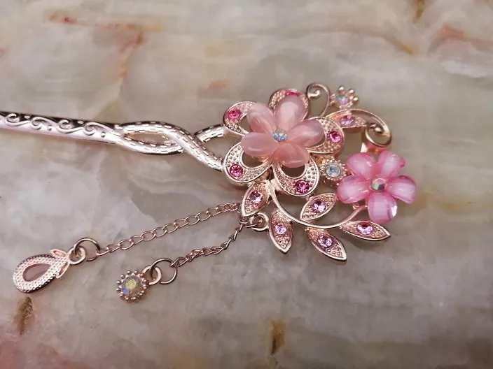 Заколка для волос, металлическая, в китайском стиле, с цветами, для стразы, женский аксессуар
