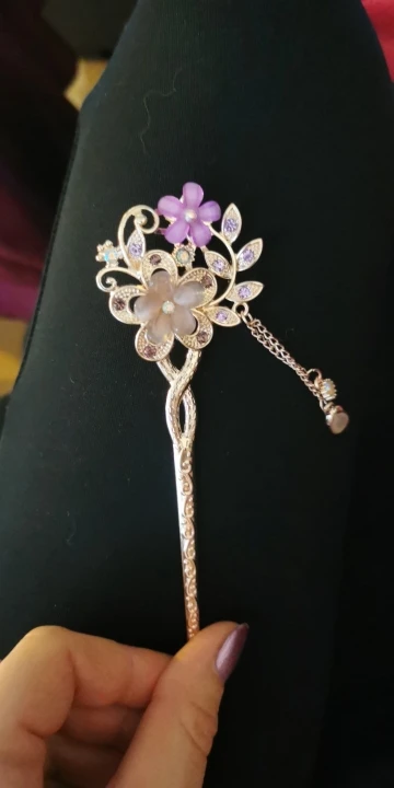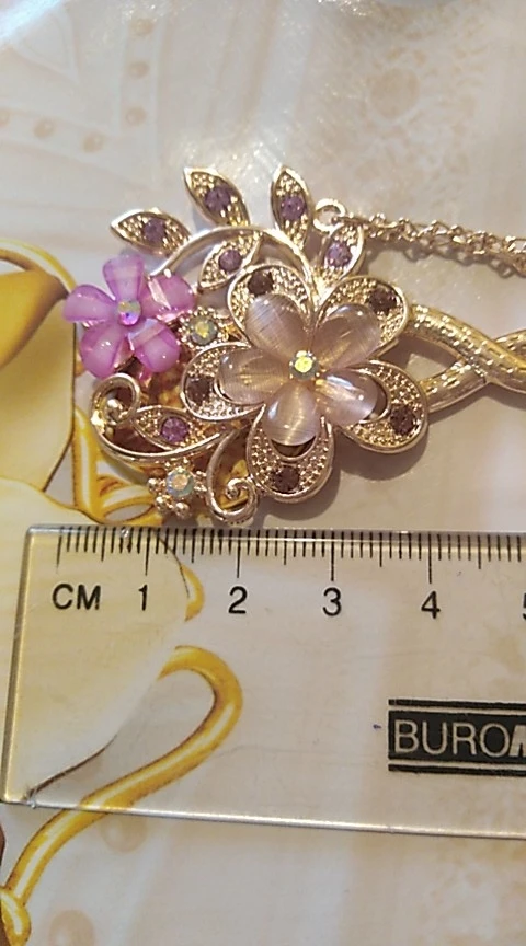 Заказ пришёл раньше срока (на неделю), что приятно удивило. Заколка была надёжно упакована, никаких деформаций нет, все камешки на месте, цепочка цела, цветок так же на месте и крепко закреплён. Единственный минус в том, что я думала что цветок будет таким же каким и на фото розовым, но он сиреневый, в целом картина общая мне нравится, так что снижать оценку не буду. Спасибо большое продавцу и магазину.
