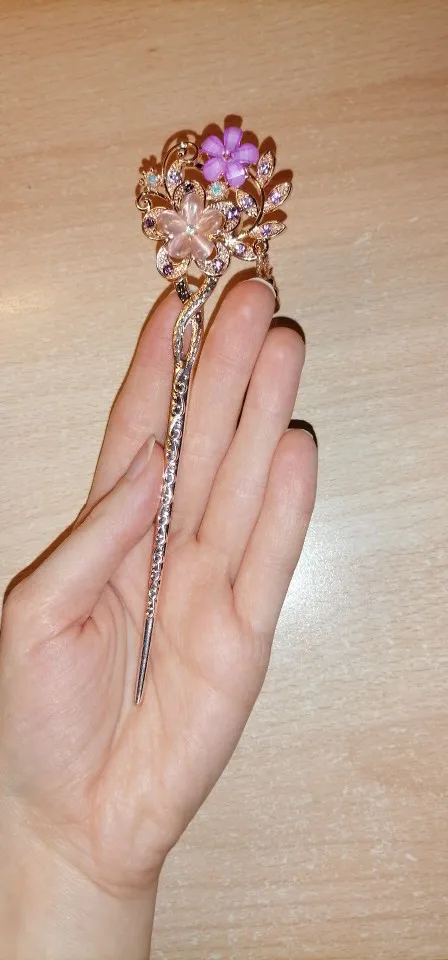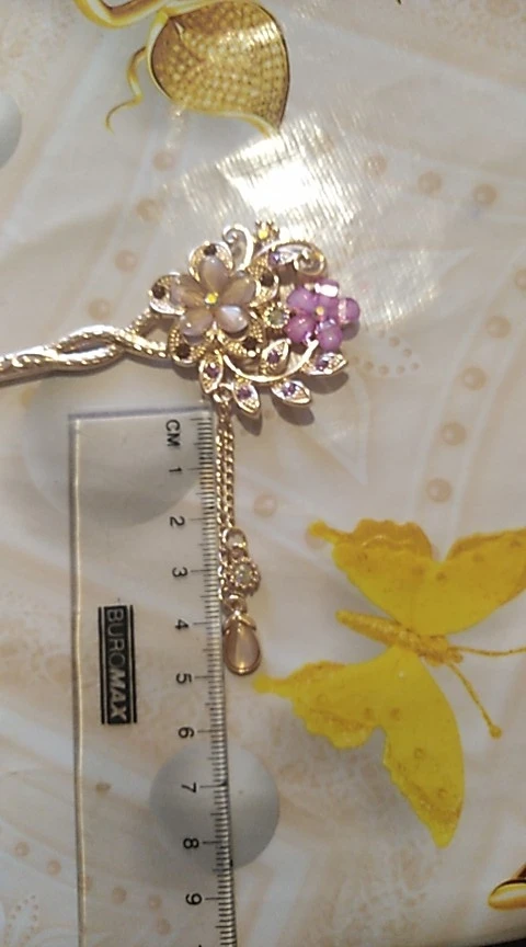 Заколка очень красивая, полностью соответствует описанию, не тяжёлая, все стразики на месте. Очень качественно сделана. Но доставка была просто отвратительная. Продавец тянул с отправкой до самого конца, буквально за часа два до закрытия отправил. Целый месяц она летела, на таможне миллион лет лежала, в общем просто туши свет. Если вам она нужна срочно, можете даже не надеяться, что придет в срок