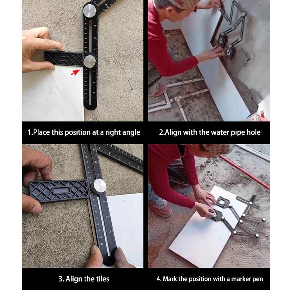 12-по бокам отверстие локатор с несколькими углами с измерительной линейкой; Угломеры Регулируемый Алюминий плитка из сплава Стекло деревообрабатывающий универсальный тонкий пояс, который крепится на