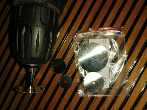 Доставка в 23рег. полтора мес. Пять дисков и держатель. Диски - штамп. нержавейка около 0,5мм. Для дерева и пластика, но не более.