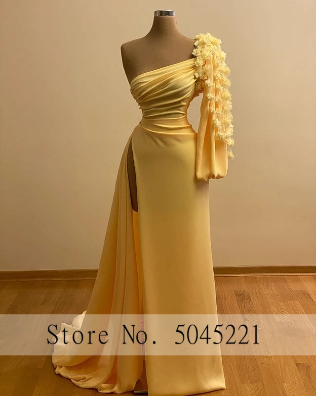 Элегантные платья знаменитостей на одно плечо с желтыми цветами, вечерние платья ручной работы с разрезом, женские вечерние платья для выпускного вечера 2020