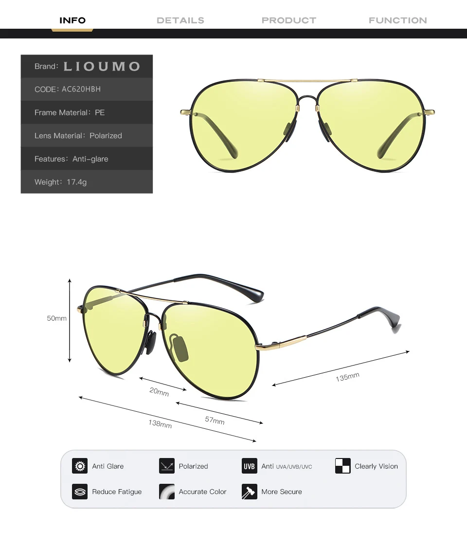 Солнцезащитные очки-хамелеоны LIOUMO Pilot для мужчин и женщин, пол...
