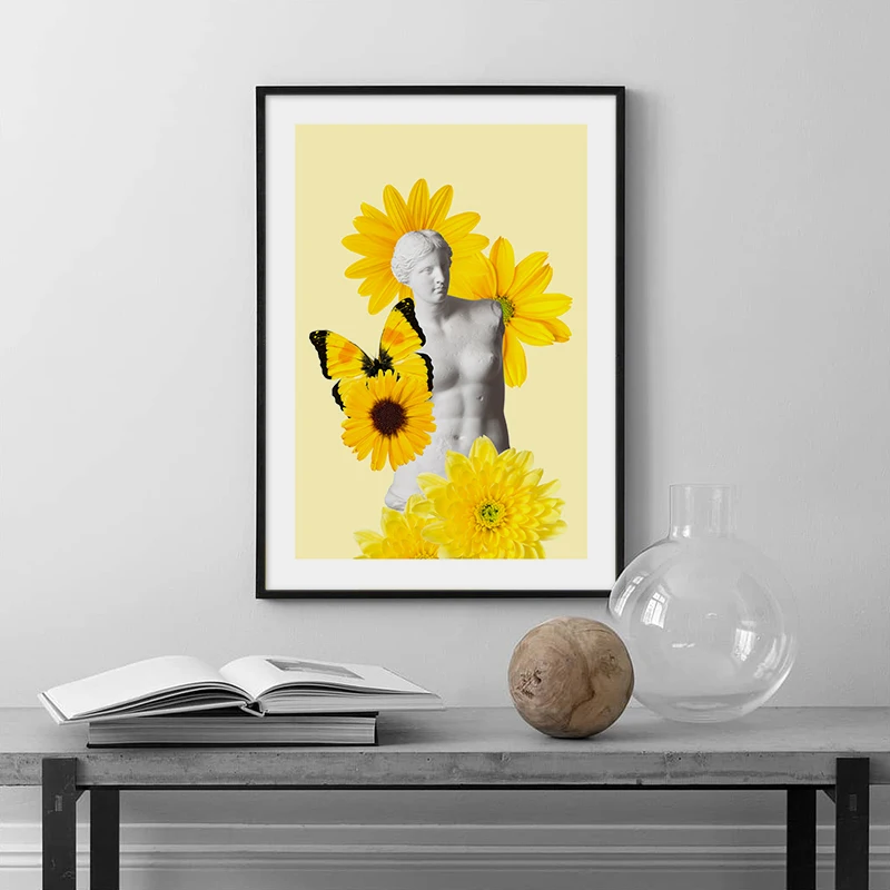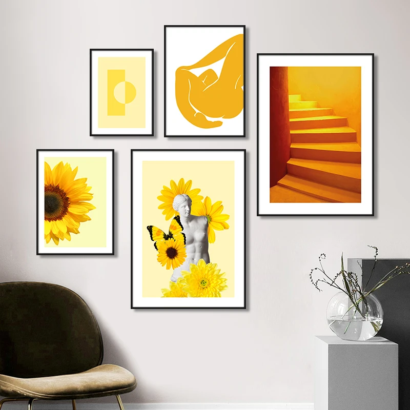 Абстрактный желтый тематические парусиновая плакат Северное растение подсолнечника статуя настенная живопись искусство панно для Гостиная Современный домашний декор