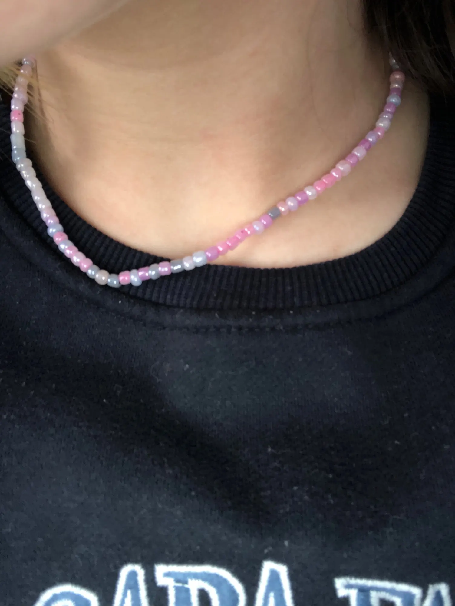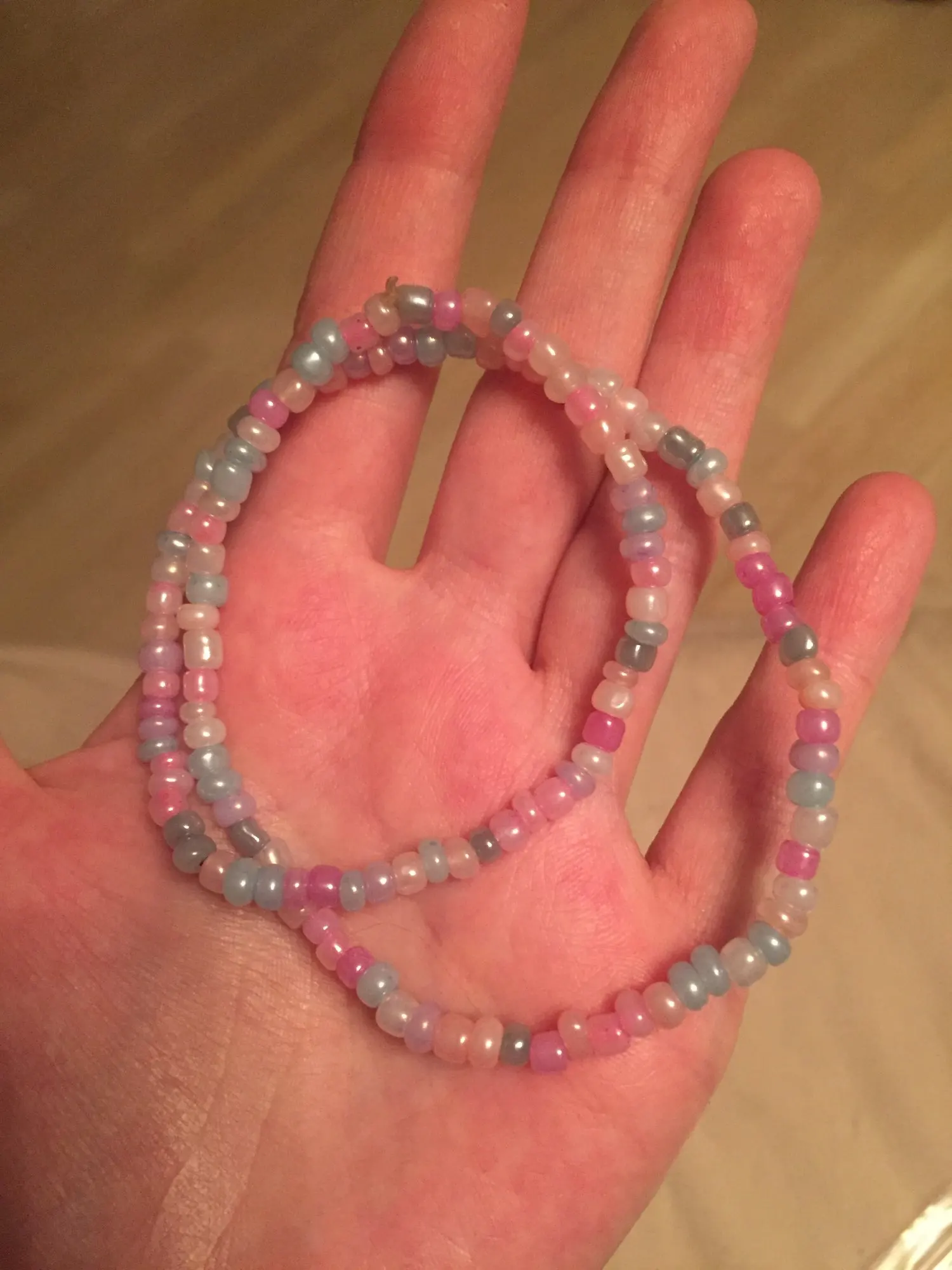 это очень мило. бусы на резинке, хорошо тянутся