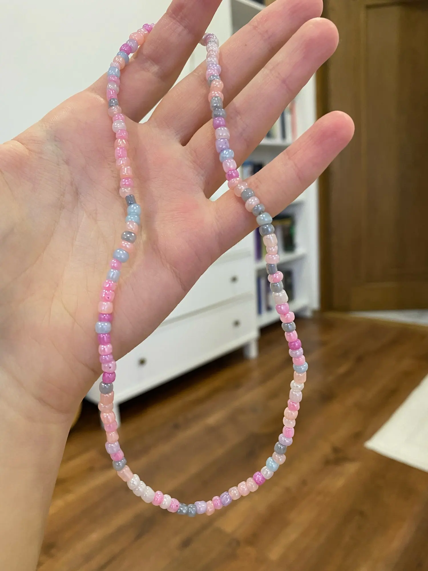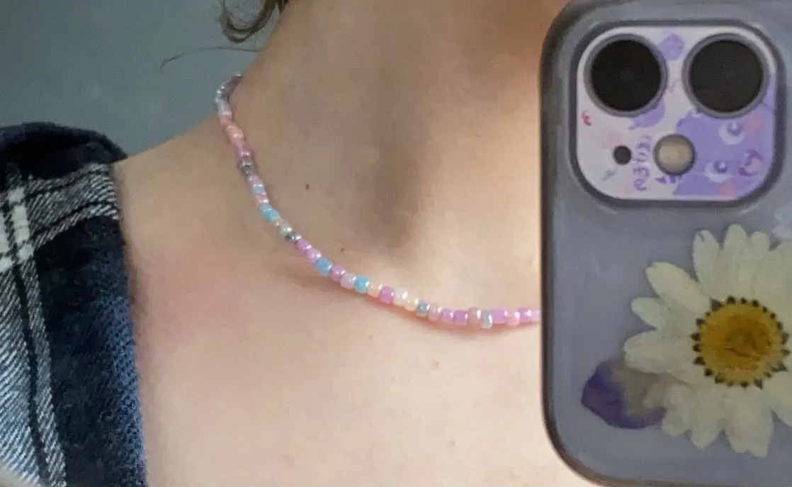 Очень красивое и нежное украшение!! «Колье» пришло в МО за месяц,качеством довольна,стоит своих денег. Минус только в том,что нет застежки, украшение на резинке. Надеюсь,что долго прослужит и не развалится.