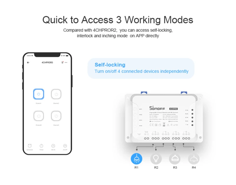 Смарт-выключатель SONOFF R34CH PRO R3 с поддержкой Wi-Fi, 433 МГц