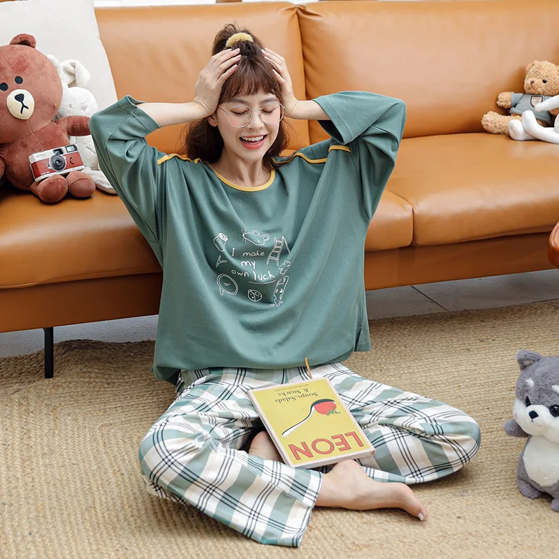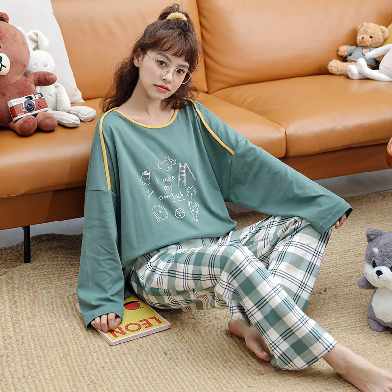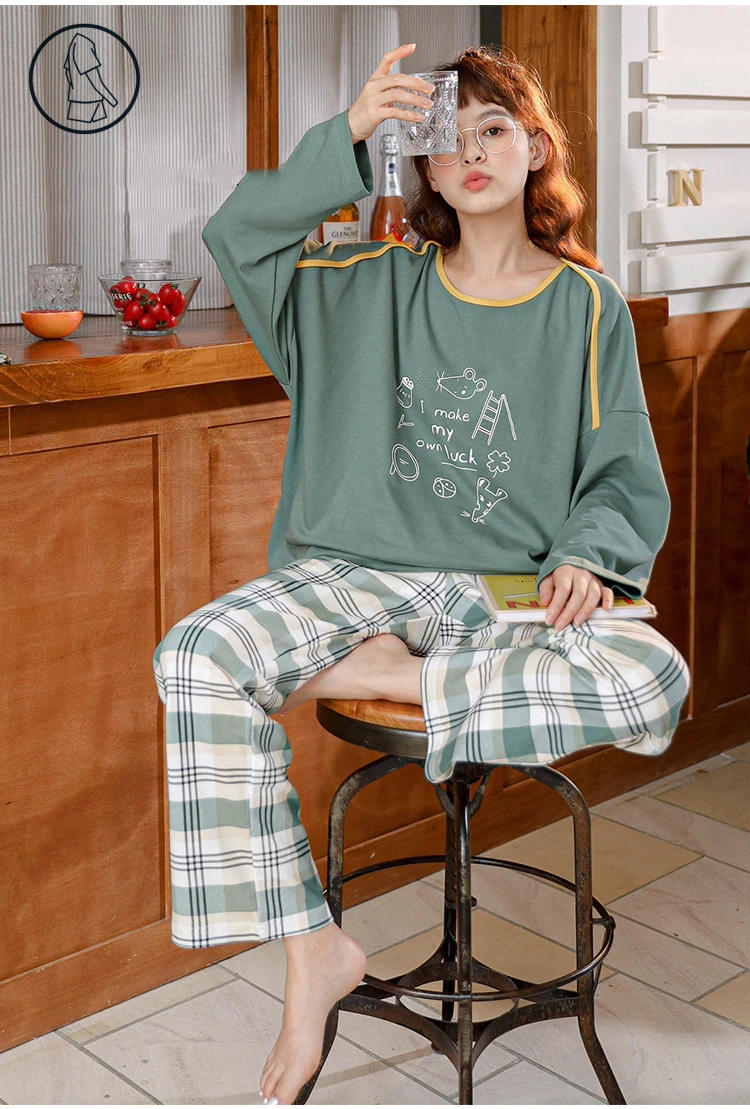 Осенний хлопковый пижамный комплект с длинными рукавами, женская пижама, одежда для сна, длинные штаны, домашняя одежда, ночная Пижама Mujer, комплект из 2 предметов