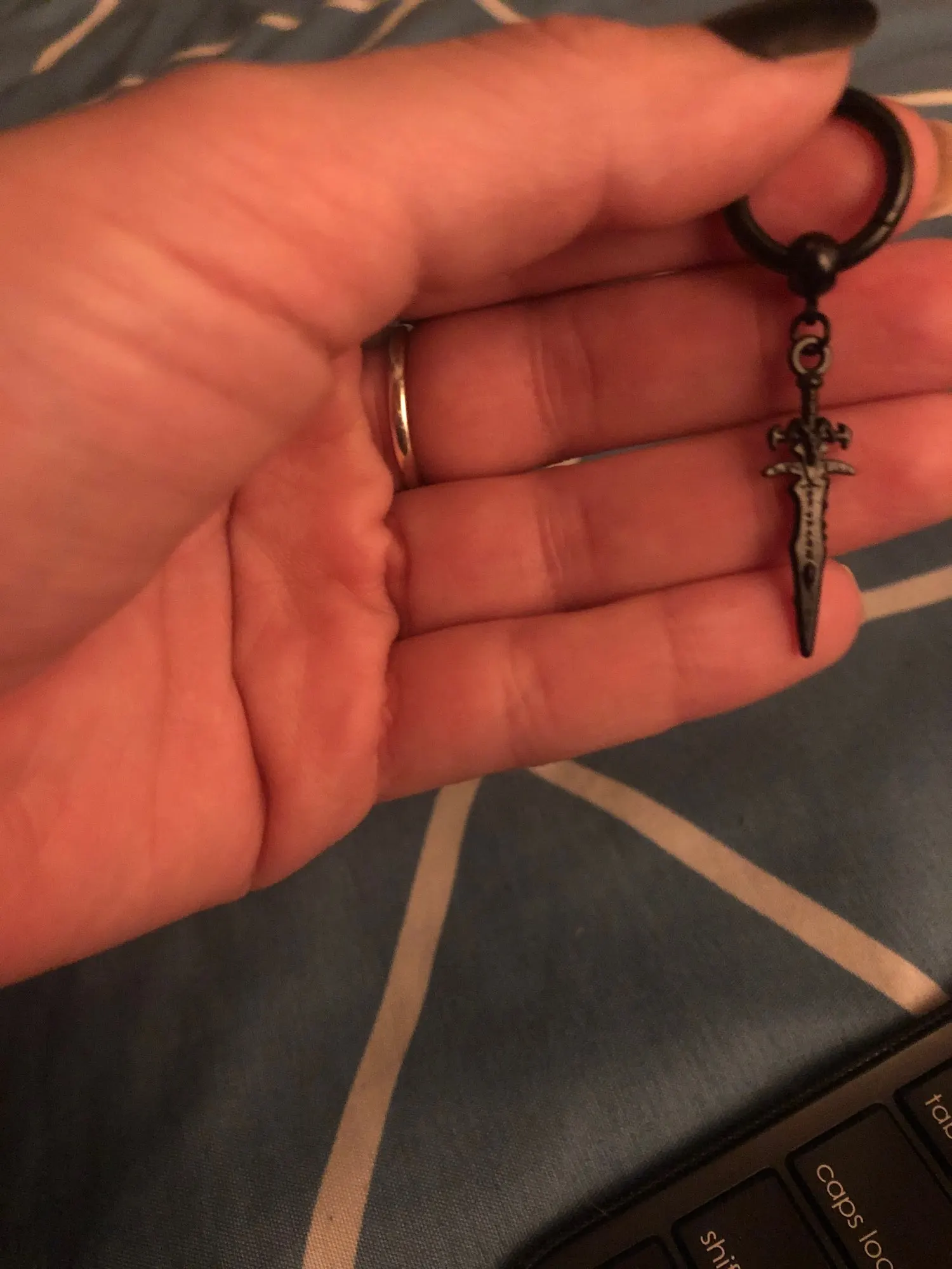Красивые серьги, мой парень-вау (World of Warcraft), и когда я увидел их, я ничего не могу сделать, но купил их в подарок для Него! Даже если они не очень большие, меч Frostmourne по-прежнему хорошо распознавается, качество хорошее, и он любит их (черный является его любимым)! Доставка была довольно медленной, но я абсолютно рекомендую купить❤