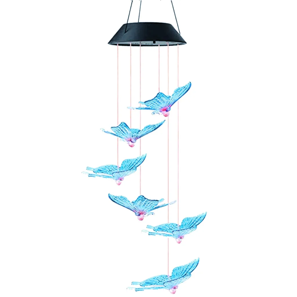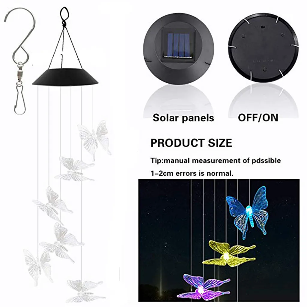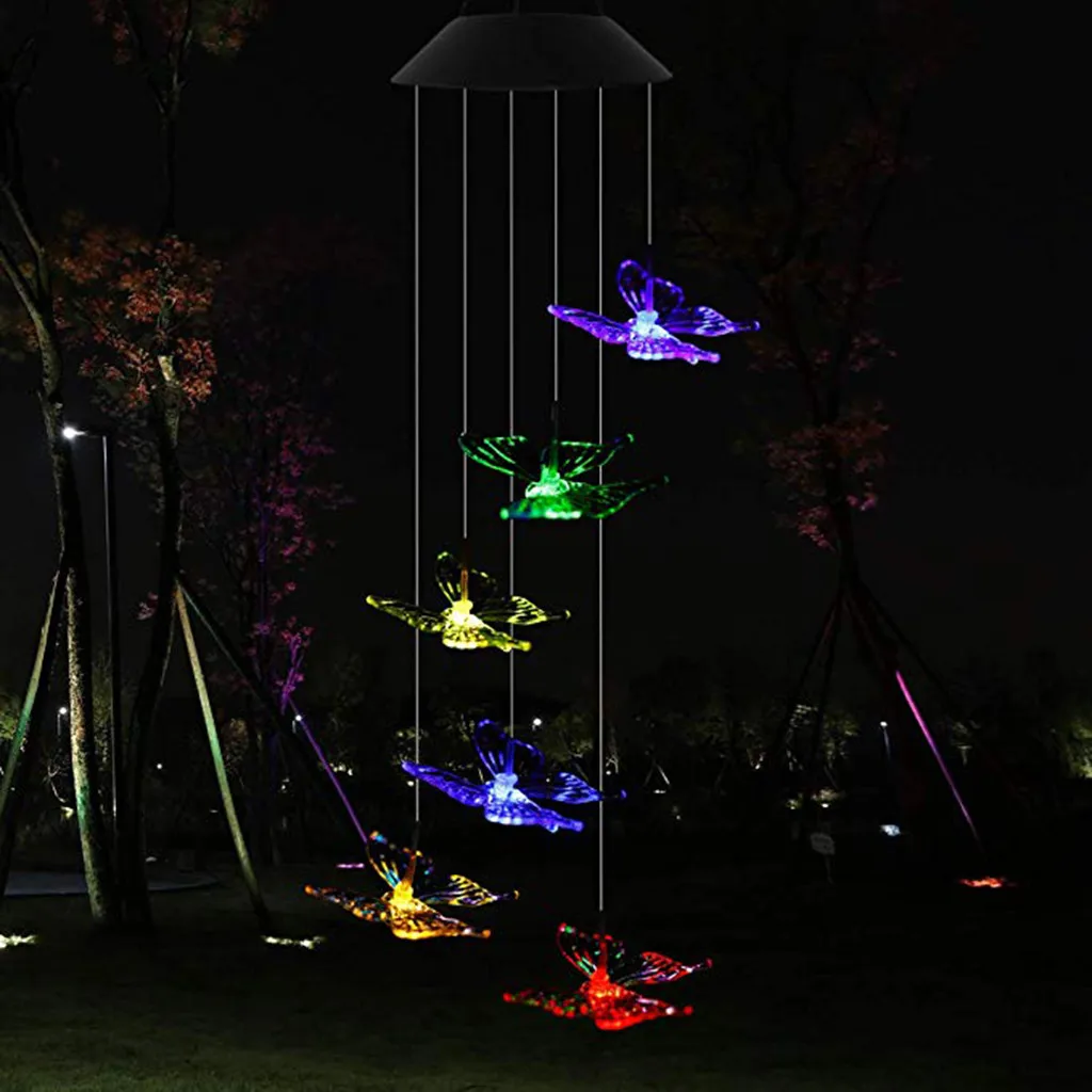 Энергоэффективная светодиодная бабочка с изменением цвета на солнечной батарее, ветряные колокольчики, декор для балкона, детской комнаты, садовый подвесной светильник, украшение