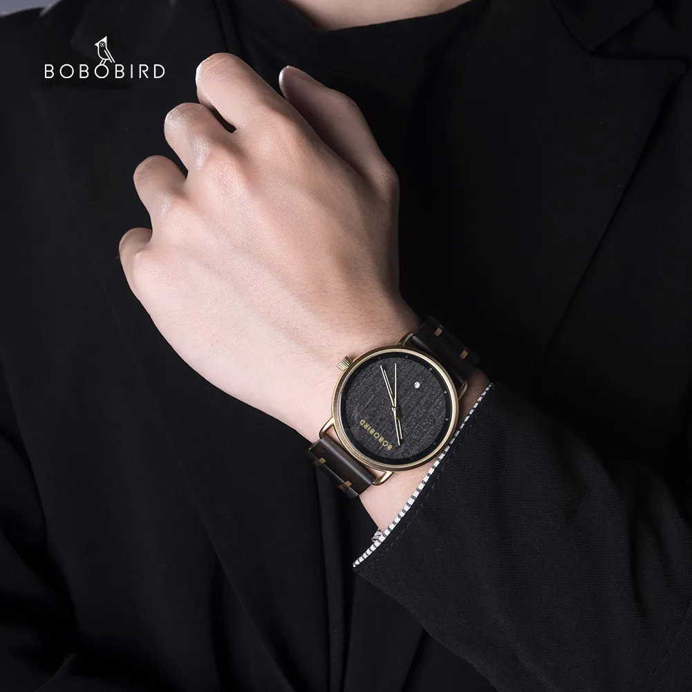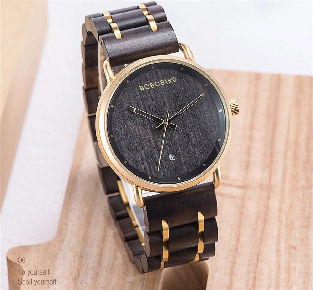 Роскошные деревянные часы BOBO BIRD с автоматической датой, золотые металлические наручные часы для мужчин, Рождественский подарок с коробкой, мужские часы