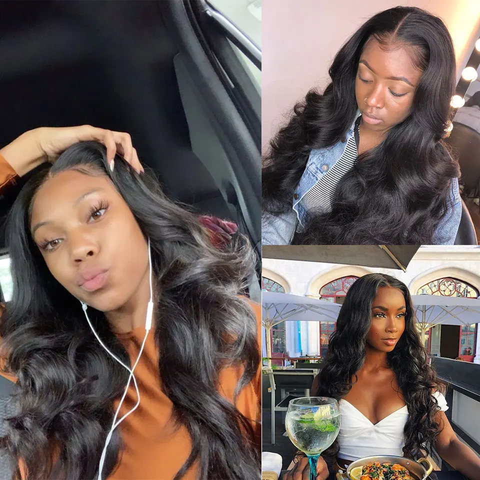 Парики человеческие из черных волос, волнистые, 13x6 см, 180 дюйма