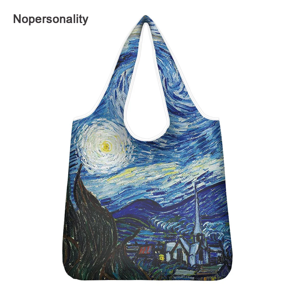 Складная рециркулированые хозяйственные сумки Эко-дружественных Женская многоразовая сумка для покупок с короткими ручками Сумка с изображением звездной ночи для фруктов и овощей, Бакалея карман