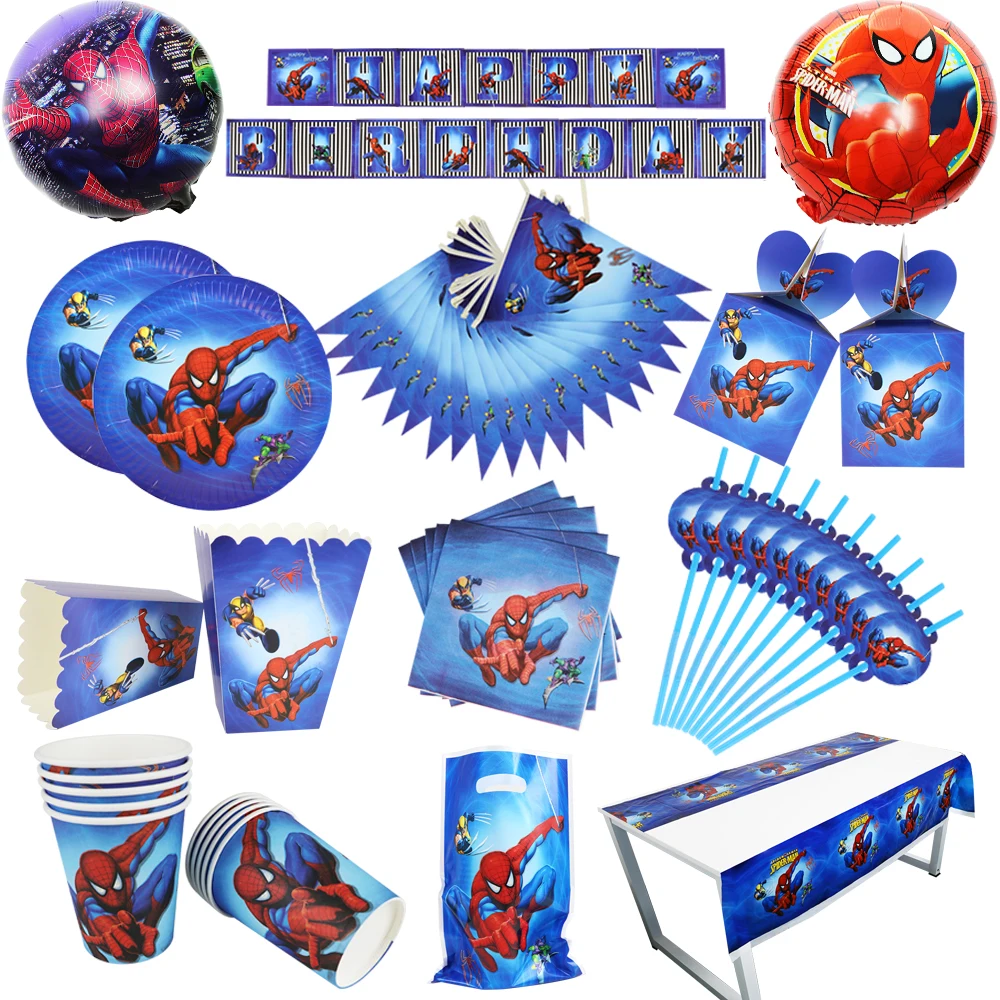 Детская скатерть для дня рождения, Человек-паук, украшения для вечеринки в честь рождения ребенка, бумажные стаканчики и тарелки