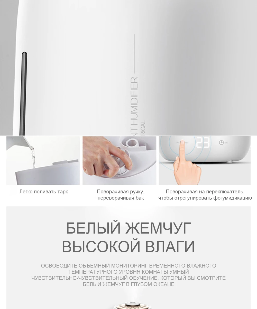 Будьте внимательны при размещении, а затем наполните увлажнитель на ровном полу или других на плоской платформе.