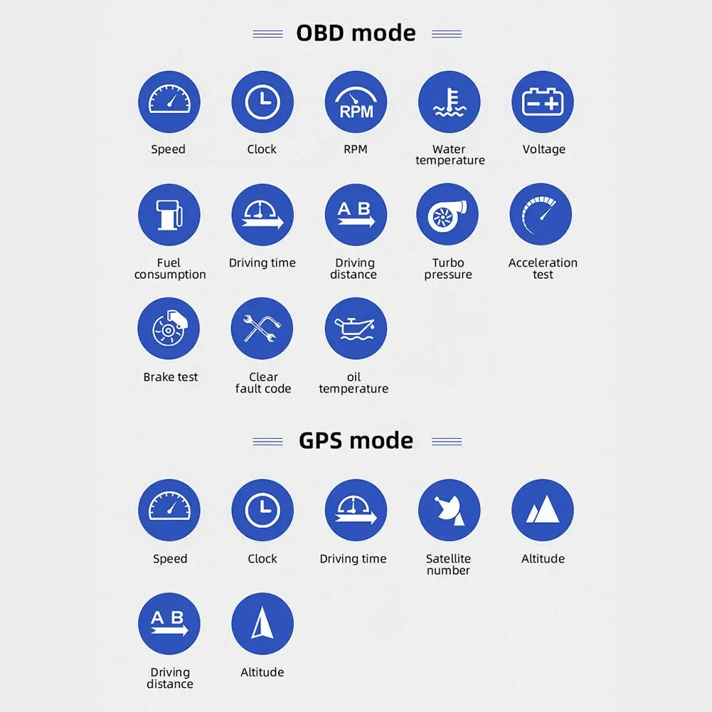 Проектор скорости автомобиля, с ЖК-дисплеем, 2 дюйма, OBD2 + GPS