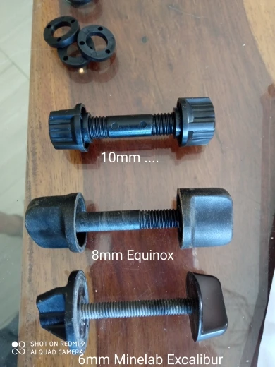 Болт для штатной катушки Garrett AT не подходит, в штангу так же не влезает. Применил к катушке Nel - вошёл без проблем. Резинки подошли, но они крайне не эластичные.
