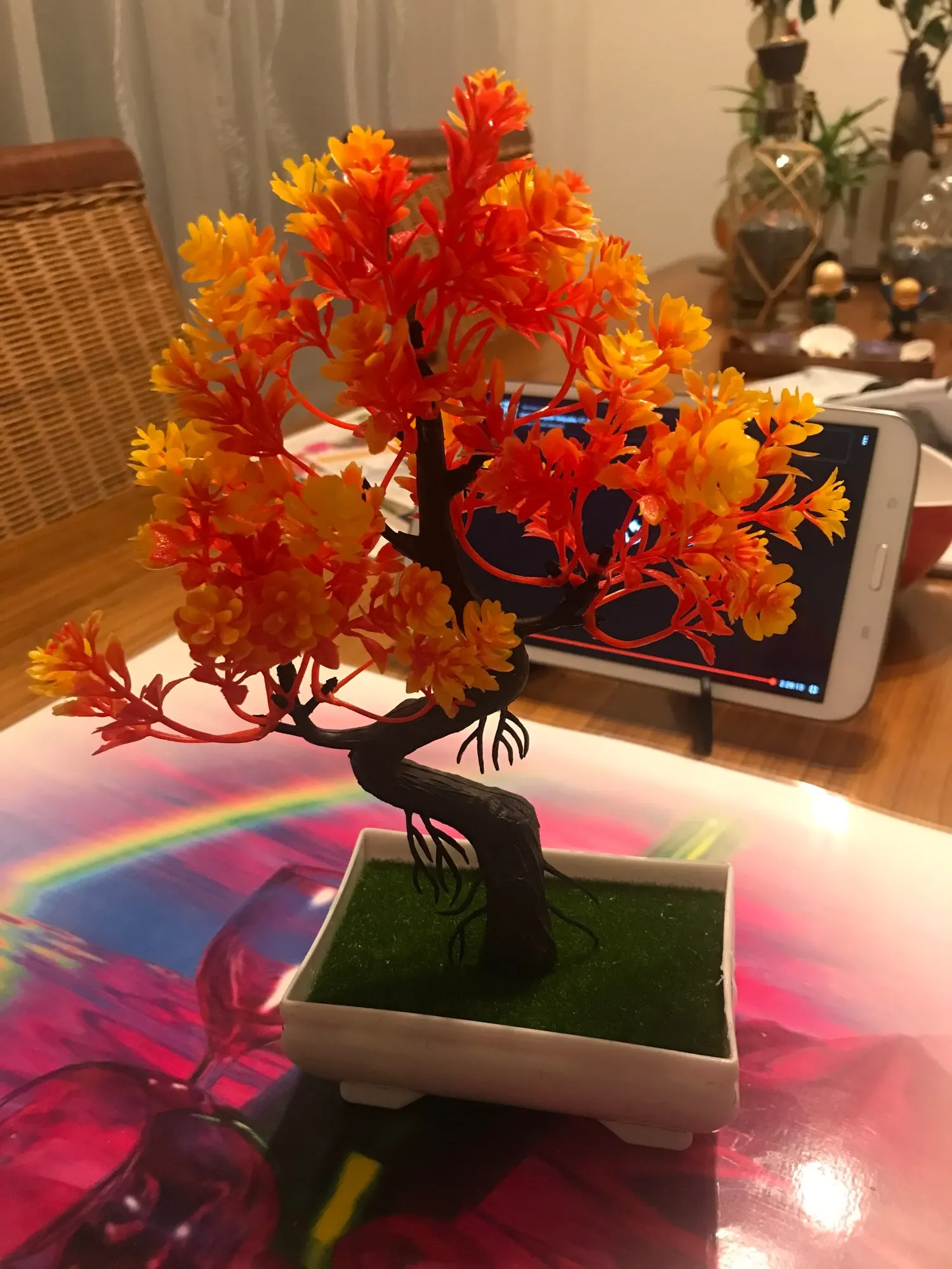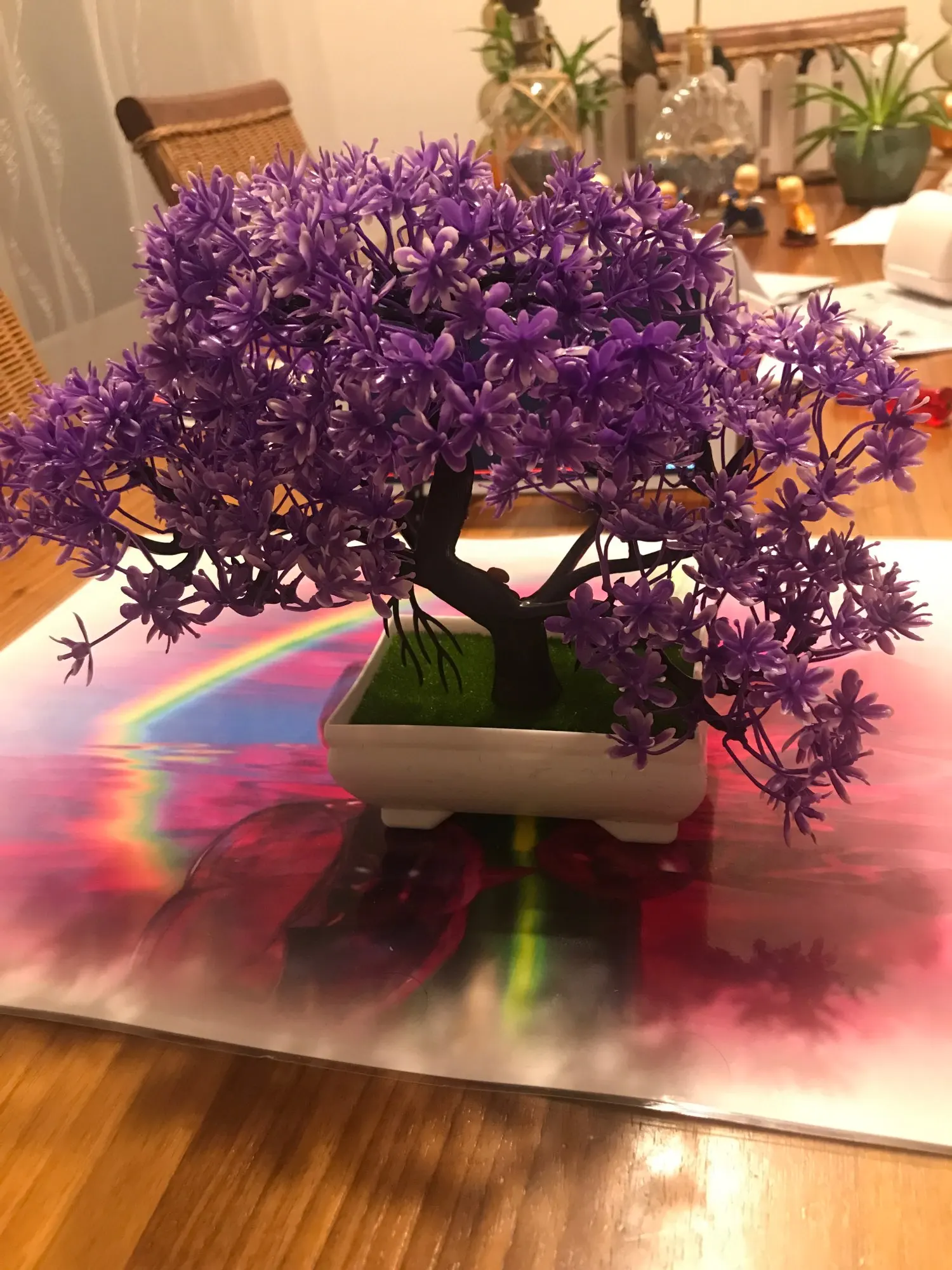 Думала будет больше по размеру. Пришёл весь мятый, на картинке выглядит пышным, в реальности веточки короткие, как ёршик, пластиковые, прокрашены не равномерно. Мне не понравилось. Продавцу стоит лучше упаковывать свой товар.
