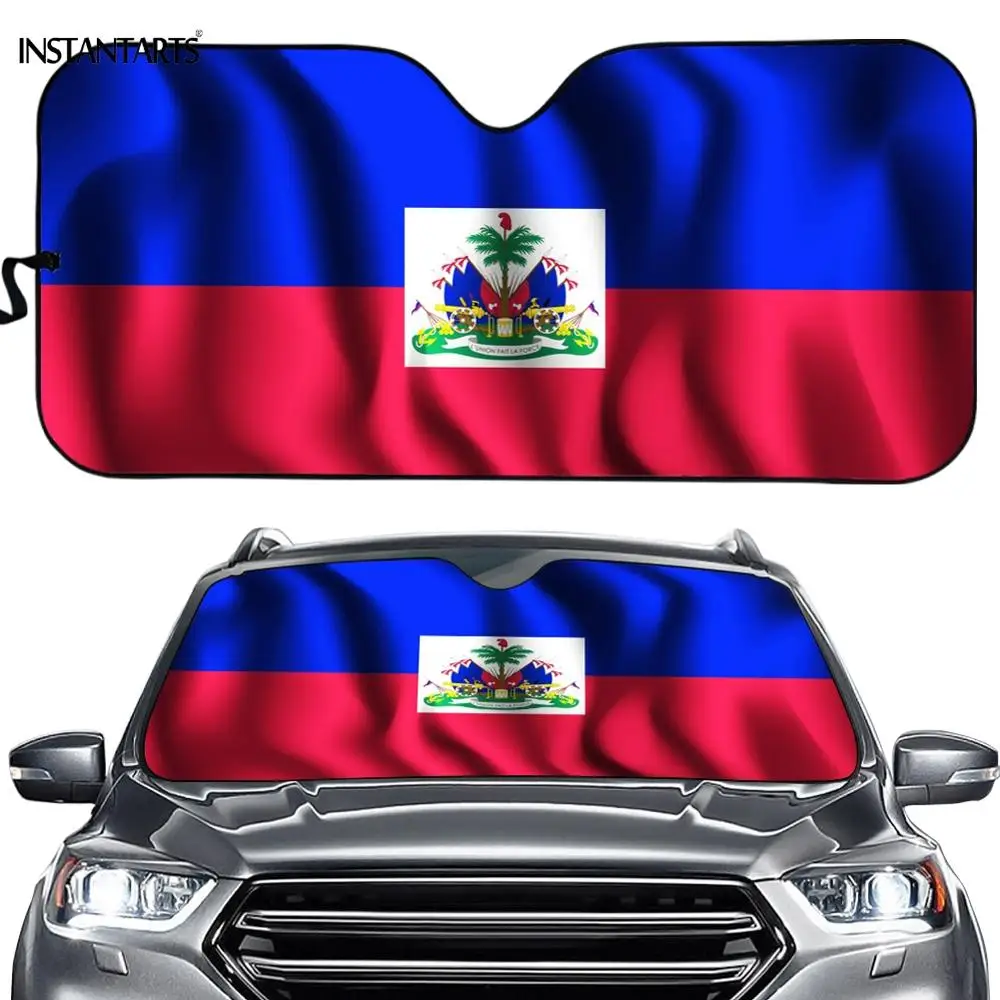 Автомобильный солнцезащитный козырек INSTANTARTS с принтом флагов Гаити, аксессуары для автомобиля, защита переднего окна, автомобильный солнцезащитный козырек, чехол на лобовое стекло