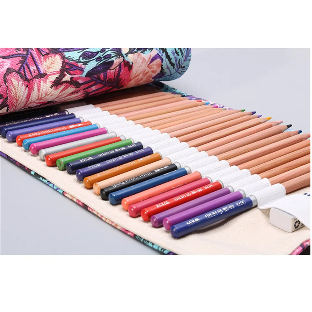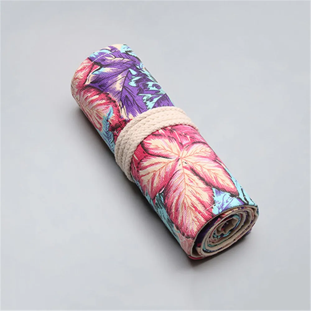 Чехол для карандашей большой емкости, 1224364872 отверстий, холщовый чехол для рулонов, цветной кленовый лист, коробка для карандашей, кисть для эскиза, сумка для ручек, канцелярские принадлежности
