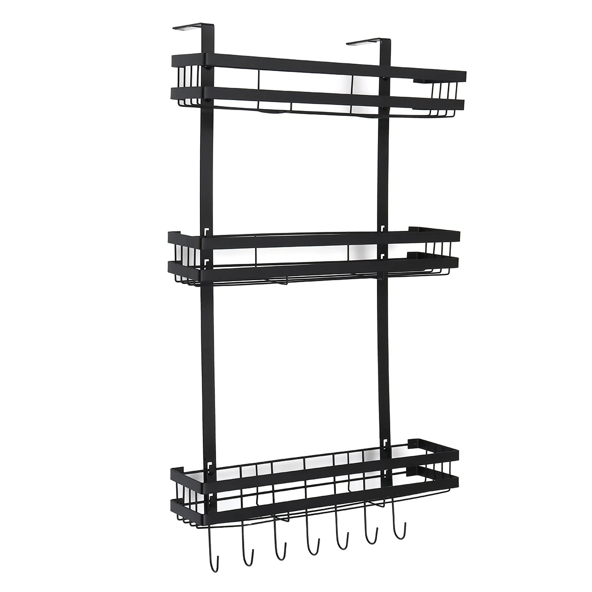 Кухонная подвесная полка-органайзер для приправ на холодильник, 3 уровня, включая-7 крючков