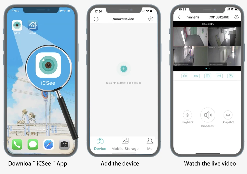 Я Подключаюсь к icsee app, хорошо работает, прост в использовании. Когда камера показывает какое-то движение, делайте фото и получайте уведомления от своего мобильного телефона, но не снимайте видео (вы должны оплатить 5,99, если вам нужна видеозапись)