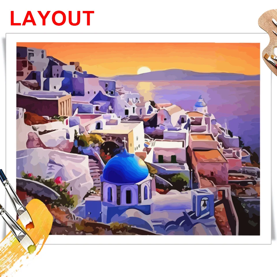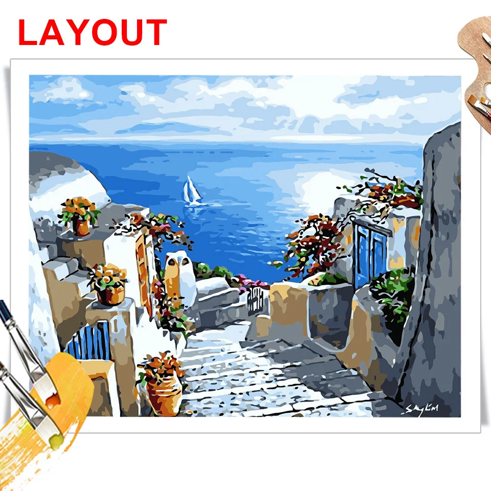 AZQSD Приморский Краски ing по номерам Сити ничья Раскраска по номерам на холсте Пейзаж без рамы украшения ручной Краски полотняная сумка для домашнего декора Набор для рисования по номерам на холсте, без рамки