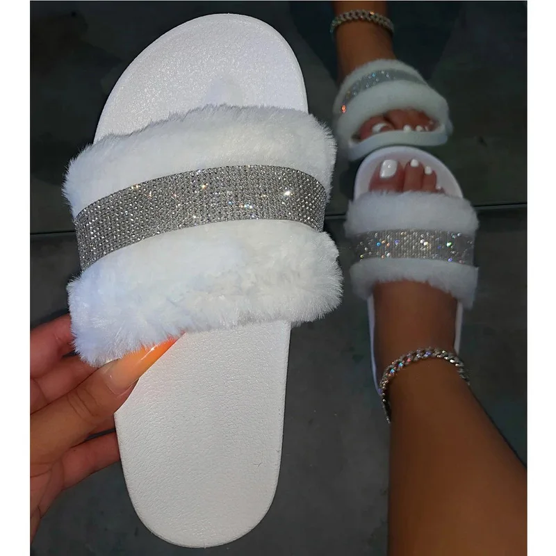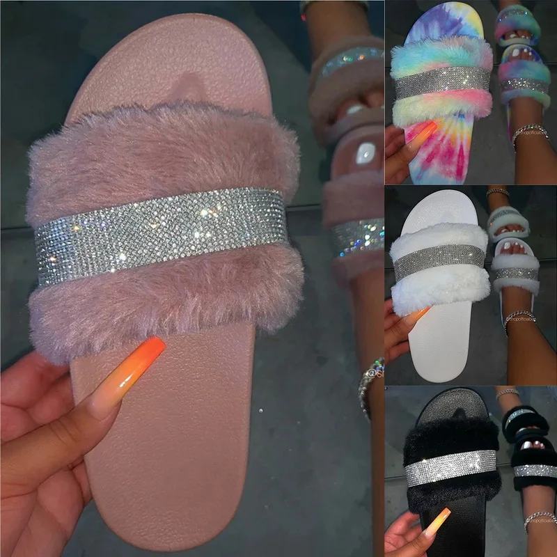 LitthingЖенские меховые шлепанцы; Летние блестящие шлепанцы; Плюшев...