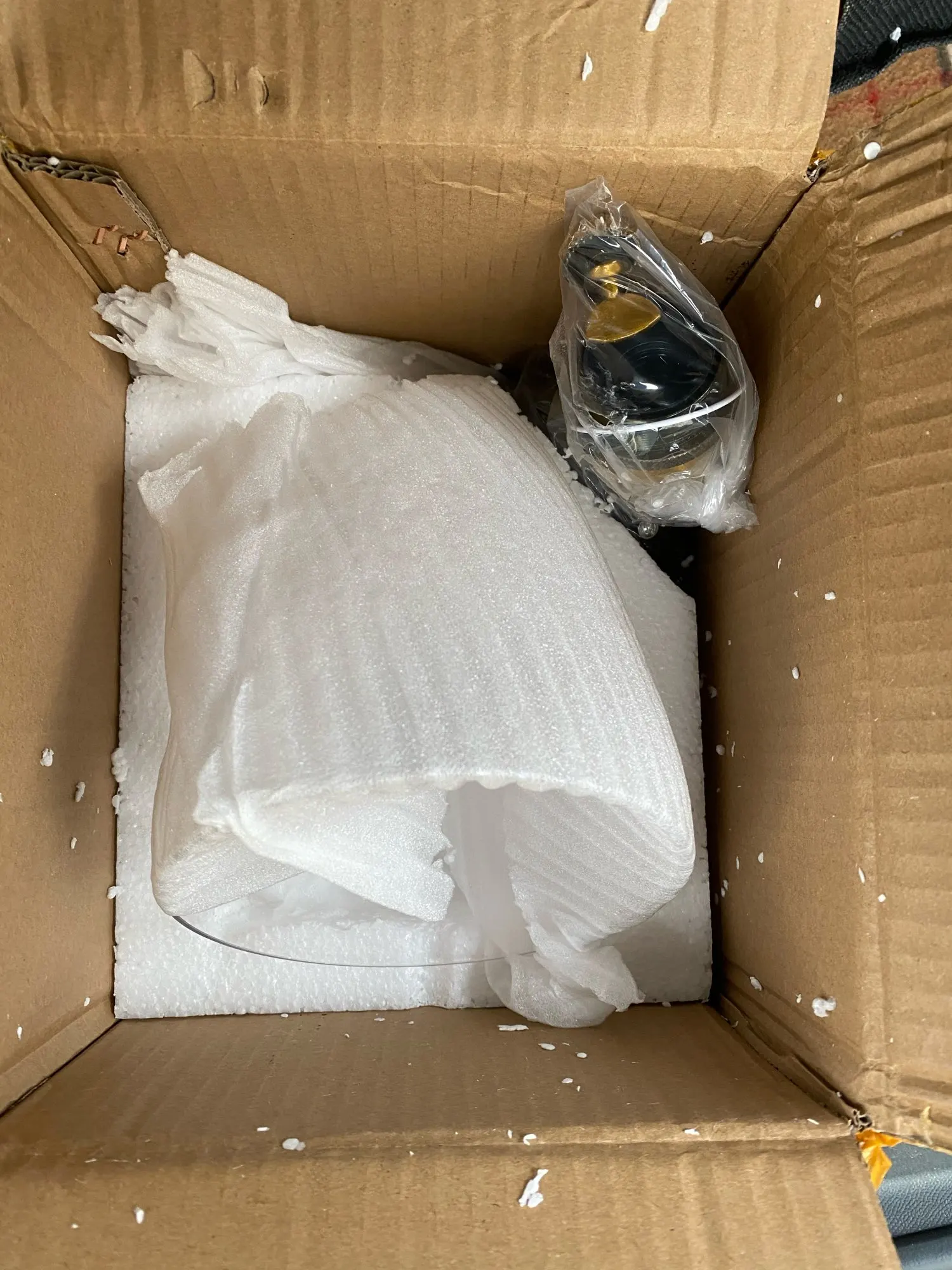 дешёвый светильник, сделан и самого тонкого металла. Ставить не стали, выкинули. Как есть!