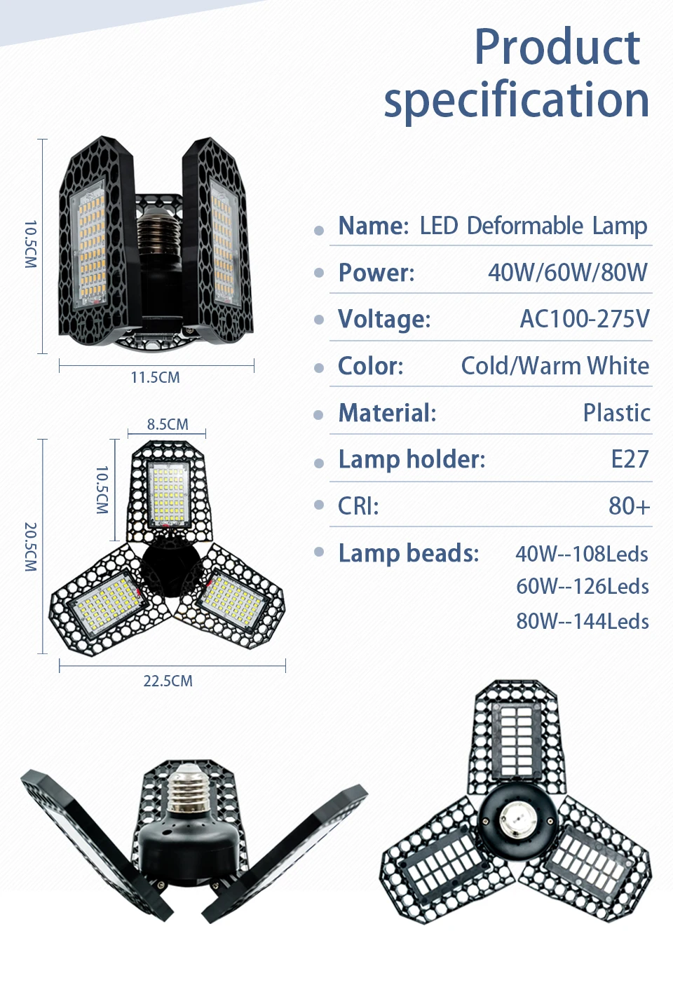 Страна: RU Color: Cold White Wattage: 80W 85V-265V Доставка: Standard Shipping 19.08.2022