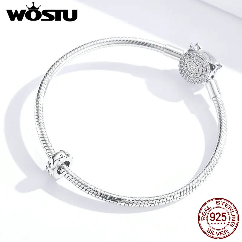 WOSTU Настоящее серебро 925 пробы классический узор амулеты циркониевые Бусины Подходят оригинальный браслет кулон DIY ожерелье ювелирные изделия FIC1559