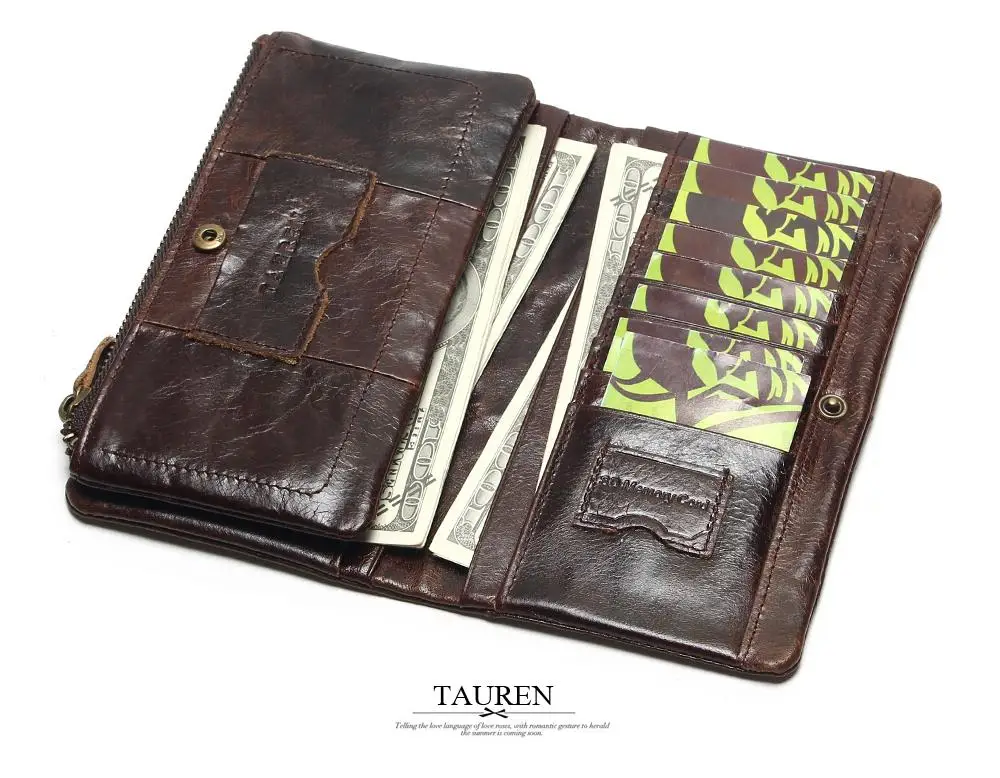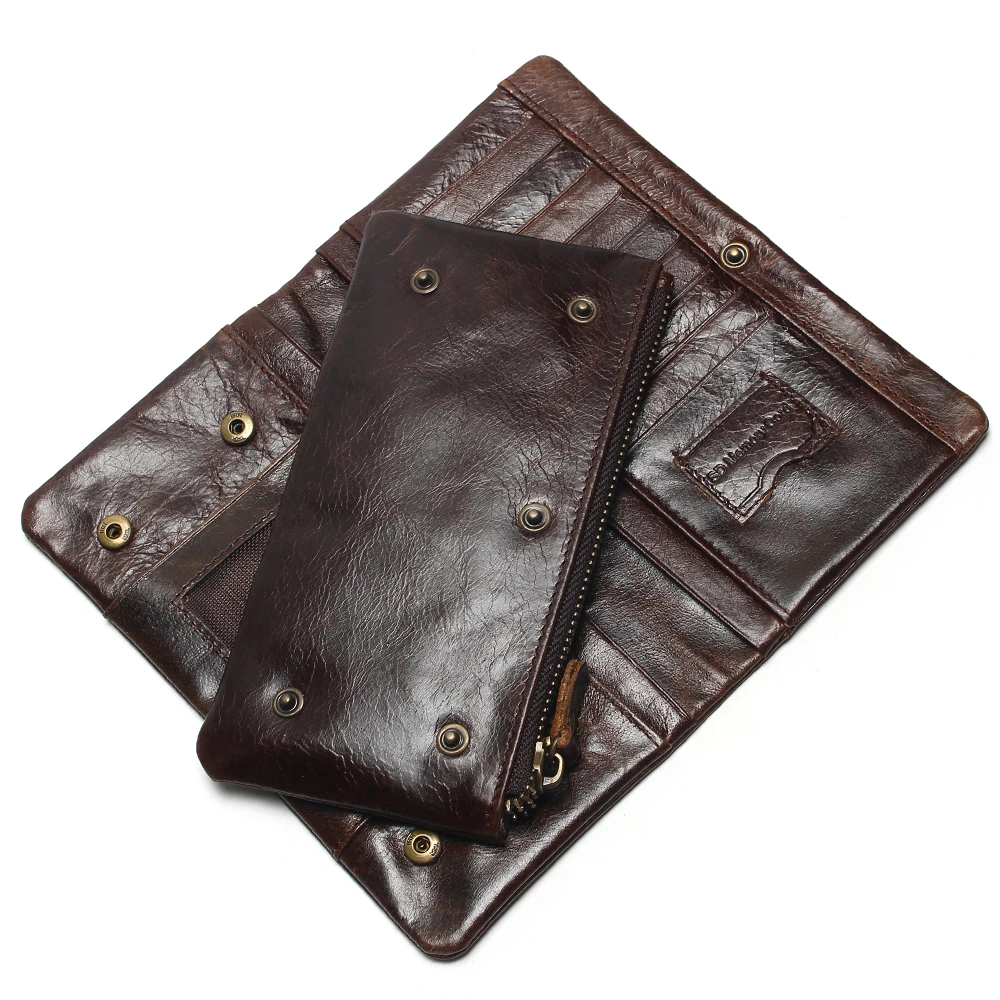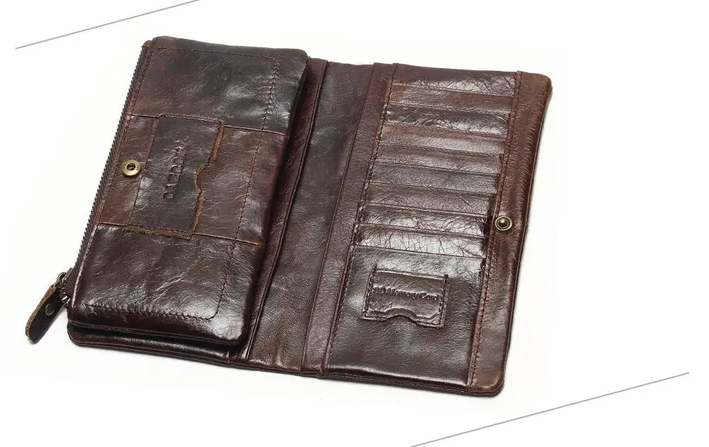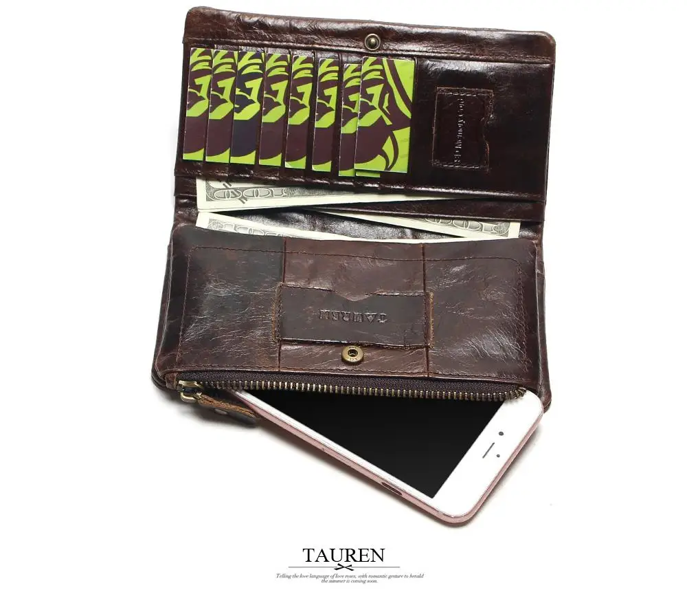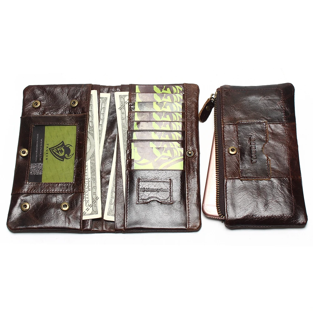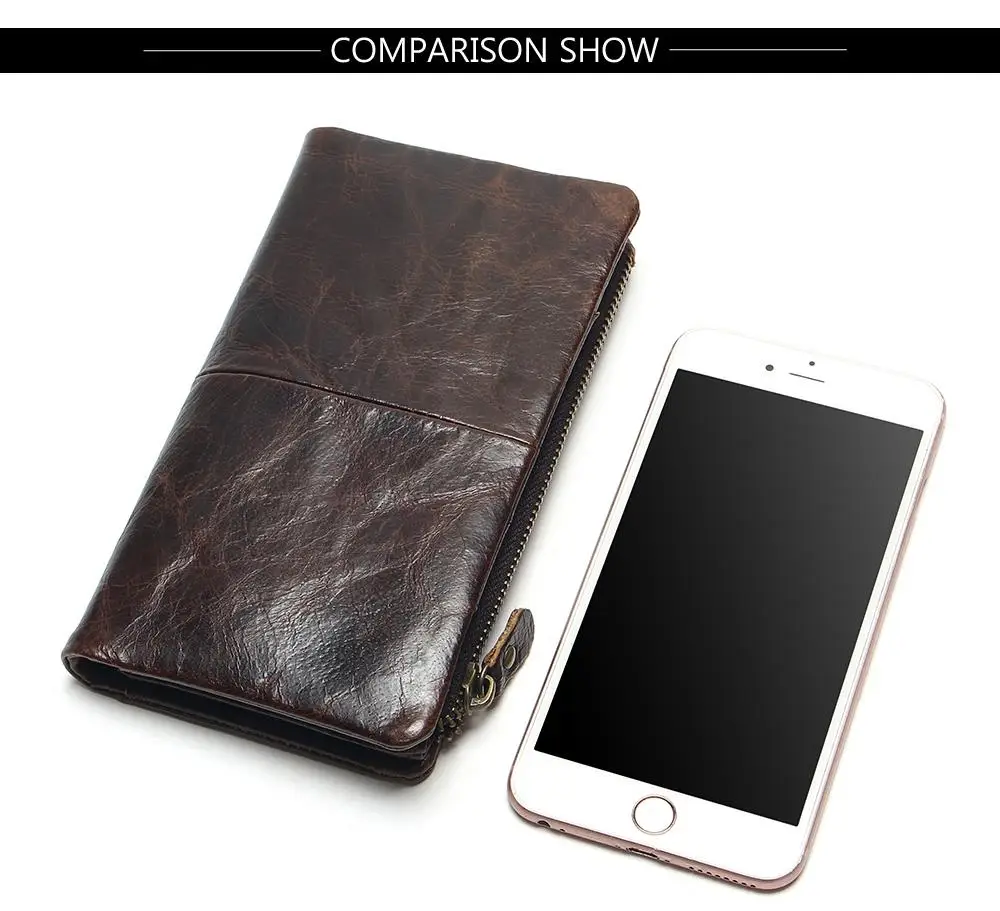 Новинка 2021, мужской клатч из натуральной кожи первого слоя из вощеной кожи в стиле ретро, большой вместимости, с несколькими отделениями для карт, Длинный кошелек, мужской клатч из натуральной кожи