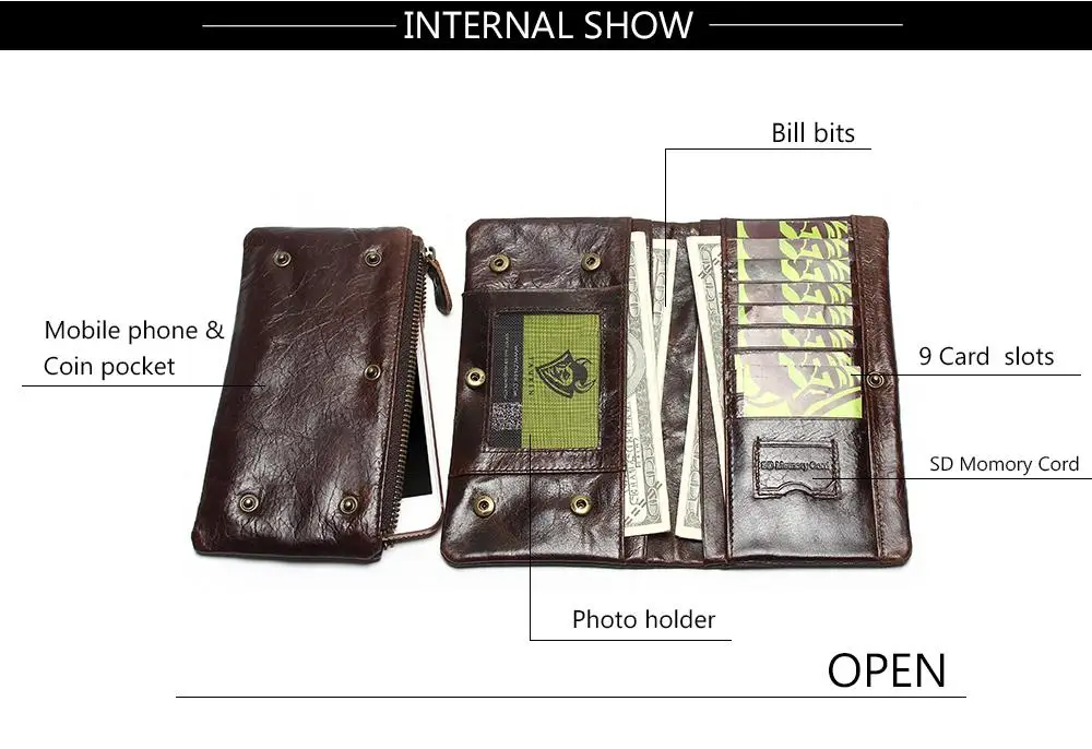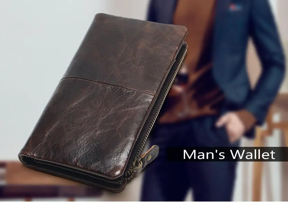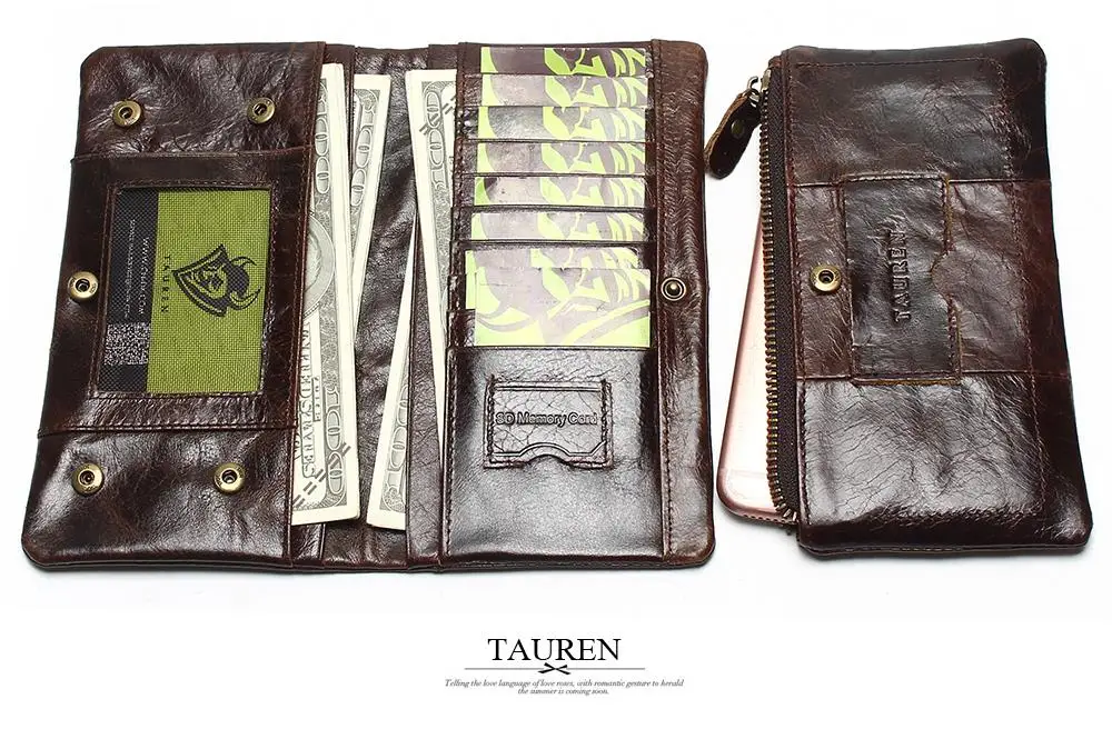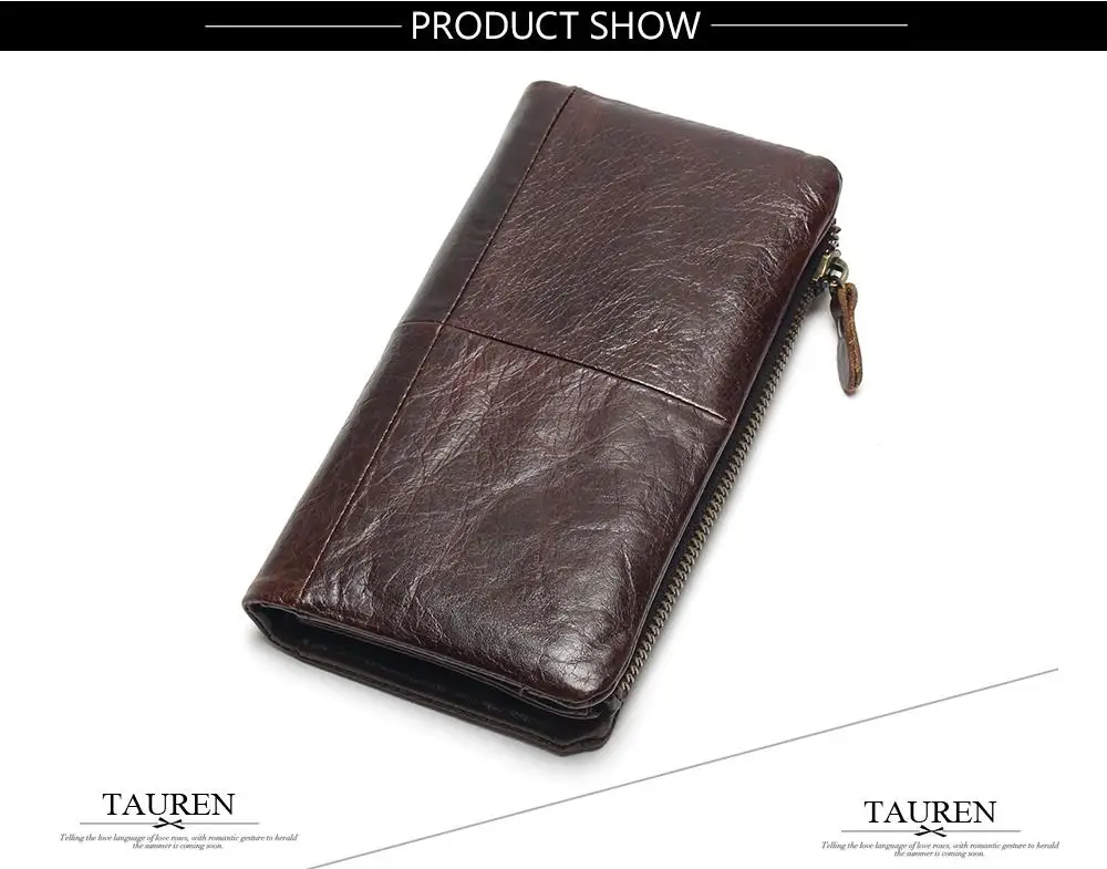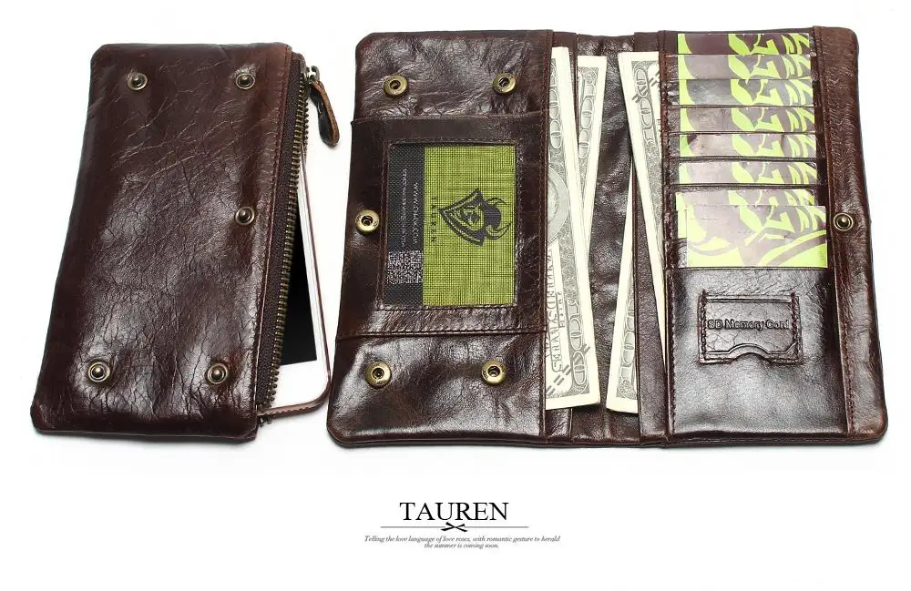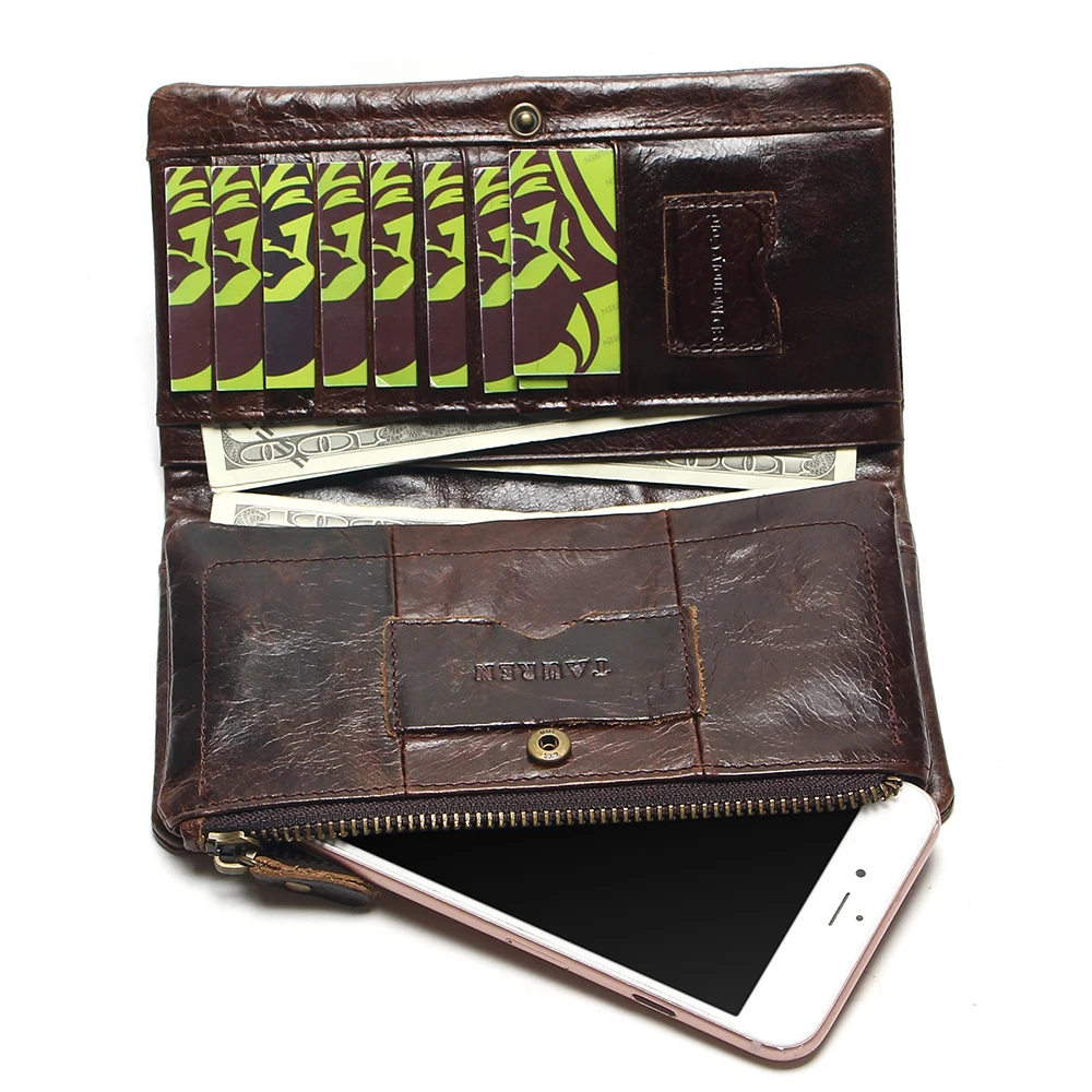 Новинка 2021, мужской клатч из натуральной кожи первого слоя из вощеной кожи в стиле ретро, большой вместимости, с несколькими отделениями для карт, Длинный кошелек, мужской клатч из натуральной кожи