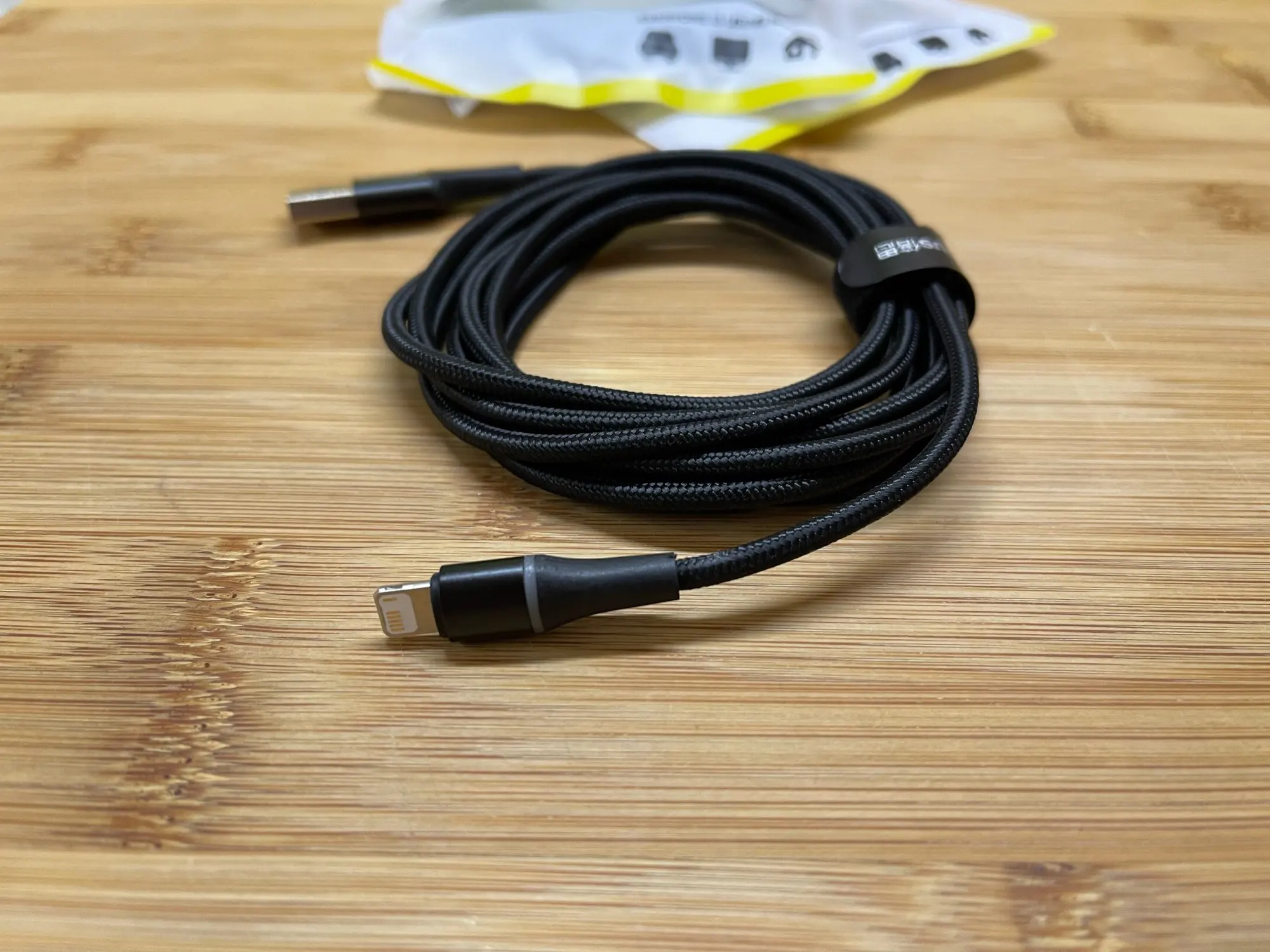 Кабель очень гибкий. Индикатор перебирает все цвета по очереди. Удивило, что очень быстро определяется ipad при подключении. И очень хороший ток зарядки от 12W блока. До 2.4А. Посмотрим, как долго проживёт.