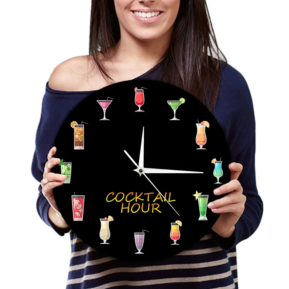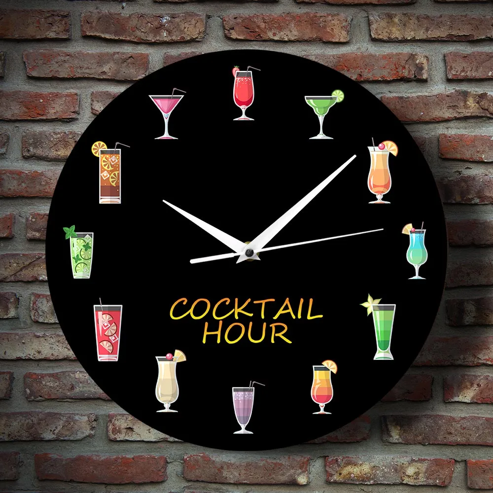 Цветные настенные часы с принтом на спиртовой основе, для коктейлей, напитков, бара, паба, вывеска, подвесные настенные часы для кухни, клуба, украшение для дома