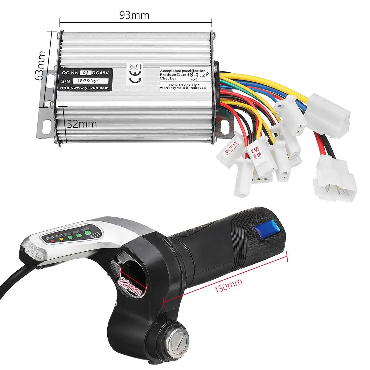 Название: регулятор щеточного электродвигателя 48 в 1000 Вт + ручка дроссельной заслонкиМатовый контроллер электродвигателя:Номинальное напряжение: 48 В постоянного токаПредел тока: 32 АНоминальная мощность: 1000 ВтЗащита от пониженного напряжения: 42 вПодходящий Двигатель: щеточный двигатель постоянного токаПоворотные ручки дроссельной заслонки:Рабочее напряжение дроссельной заслонки: 5 В постоянного токаСигнал регулировки скорости: 0,8-4,3 вНапряжение дисплея питания: 48 В постоянного токаДисплей мощности:Обычный: 48 В и выше, 3 светодиода зеленого цветаПоловина: 47в ~ 42В, желтый светодиодПустой: 42 В или меньше, красный светодиодУгол поворота: 0 ° ~ 70 °Рабочая температура: -20 ~ + 50-Ускоритель заслонки для электрического велосипеда, скутера с индикатором мощности, 5 светодиодный ных индикаторов батареи.-Подходит для стандартных ручек 7/8 дюйма (22 мм)-Длина кабеля составляет примерно 59 дюймов (1,5 м)Определение интерфейса проводов контроллера:Аккумулятор: Толстый черный (отрицательное питание)/толстый красный (положительное питание)Двигатель: толстый желтый (отрицательный двигатель)/Толстый синий (положительный двигатель)Переключатель зажигания: тонкий красный (VCC)/тонкий синийИндикатор: тонкий красный (выходная мощность индикатора)/тонкий черный (отрицательный индикатор)Тормоз: тонкий желтый (сигнал тормоза)/тонкий черный (отрицательная мощность)Регулятор скорости: тонкий синий (входной сигнал на руль скорости)/тонкий черный (негативная мощность)/тонкий красный (положительная мощность 5 В)Порт зарядки: тонкий красный (положительная Входная мощность заряда)/тонкий черный (отрицательная мощность)Стоп-сигнал: тонкий красный (Мощный положительный)/тонкий черный (мощный отрицательный)Спорт: тонкий желтый/тонкий зеленый (ограничение скорости, соединение проводов вместе)