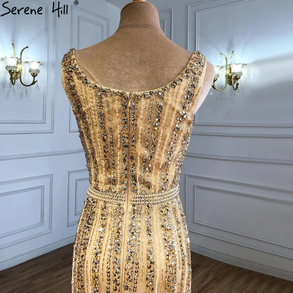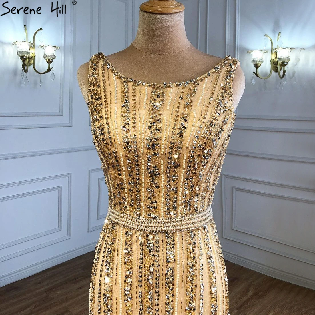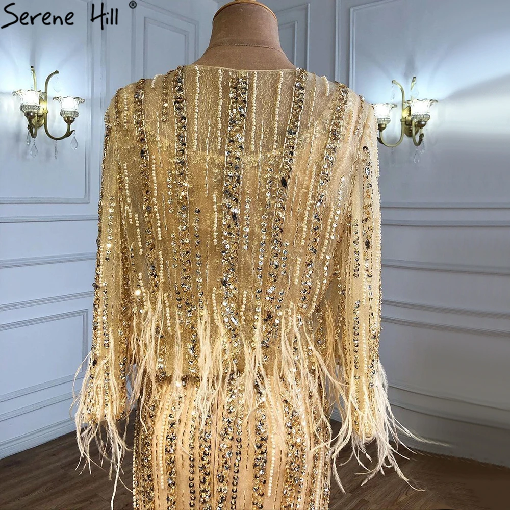 Серое вечернее платье с длинными рукавами в Дубае, роскошное торжественное платье с круглым вырезом и стразами, 2021 Serene Hill LA70503