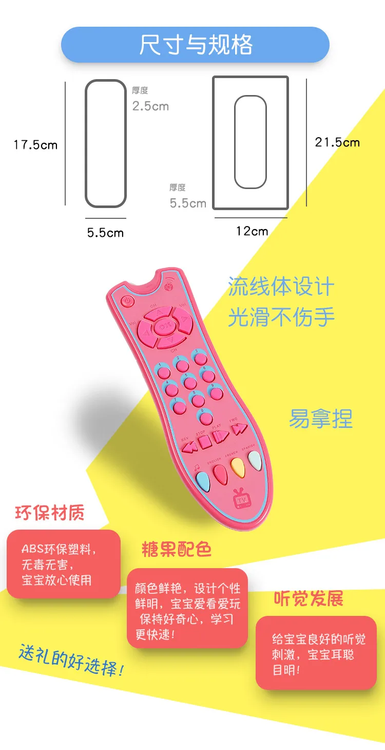 Особенности:1. Малыш старше 6 месяцев любопытен ко всему, детская игрушка на пульте управления, пусть любопытство малыша возьмет себя за развитие своего исследования.2. Ребенку нравится получать пульт от телевизора или мобильный телефон от родителей. Малыши могут притворяться ЧанNel surf по этим каналам, включая погоду и новости; Интерактивная ролевая игра для игрушки раннего развития. Развлечение для детей, легко для родителей.3.Кнопка вверх и вниз регулировки громкости учит понятию противоположностей;Регулятор громкости позволяет родителям контролировать громкость звуков.4.Красочные пуговицы знакомят с цветами, цифрами, чтобы сохранить внимание вашего ребенка. Обучающий пульт помогает малышу обнаружить причину и эффект, развить его познавательные и мыслительные способности.5.Музыкальная и светильник вая игрушка всегда под рукой, чтобы развлечь, поощряет и помогает вашему малышу исследовать и учиться. Веселая Детская дистанционная игрушка помогает стимулировать мелкую моторику вашего ребенка.Характеристики:Материал: пластикЦвет: серый, розовыйРазмер: 22*12,5*5,5 смПрименимый возраст: младенцы (0-2 года)