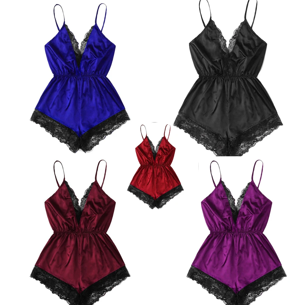 2020 женское сексуальное ночное белье, комбинезон для сна с кружевом и V-образным вырезом, комбинезон для ночной спальни, цельное сексуальное нижнее белье большого размера XXXL
