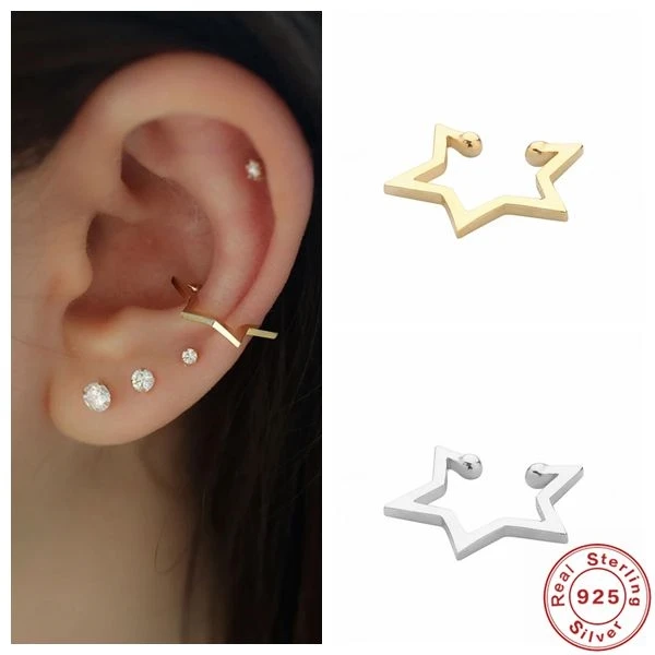 Серьги-каффы женские из стерлингового серебра 925 пробы, без сережек в стиле пирсинга, серебряная Ушная манжета