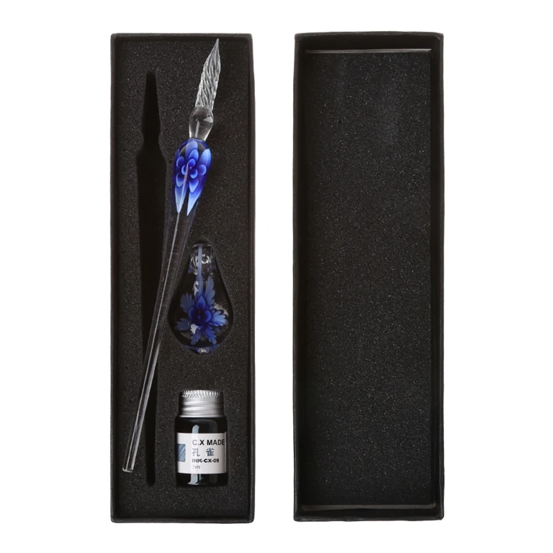 Винтажная ручная работа, элегантная Хрустальная Цветочная стеклянная ручка, чернильные ручки, подарок
