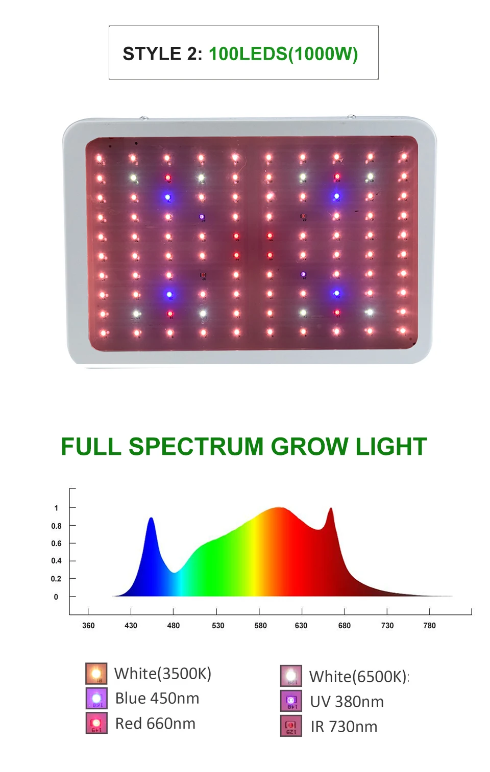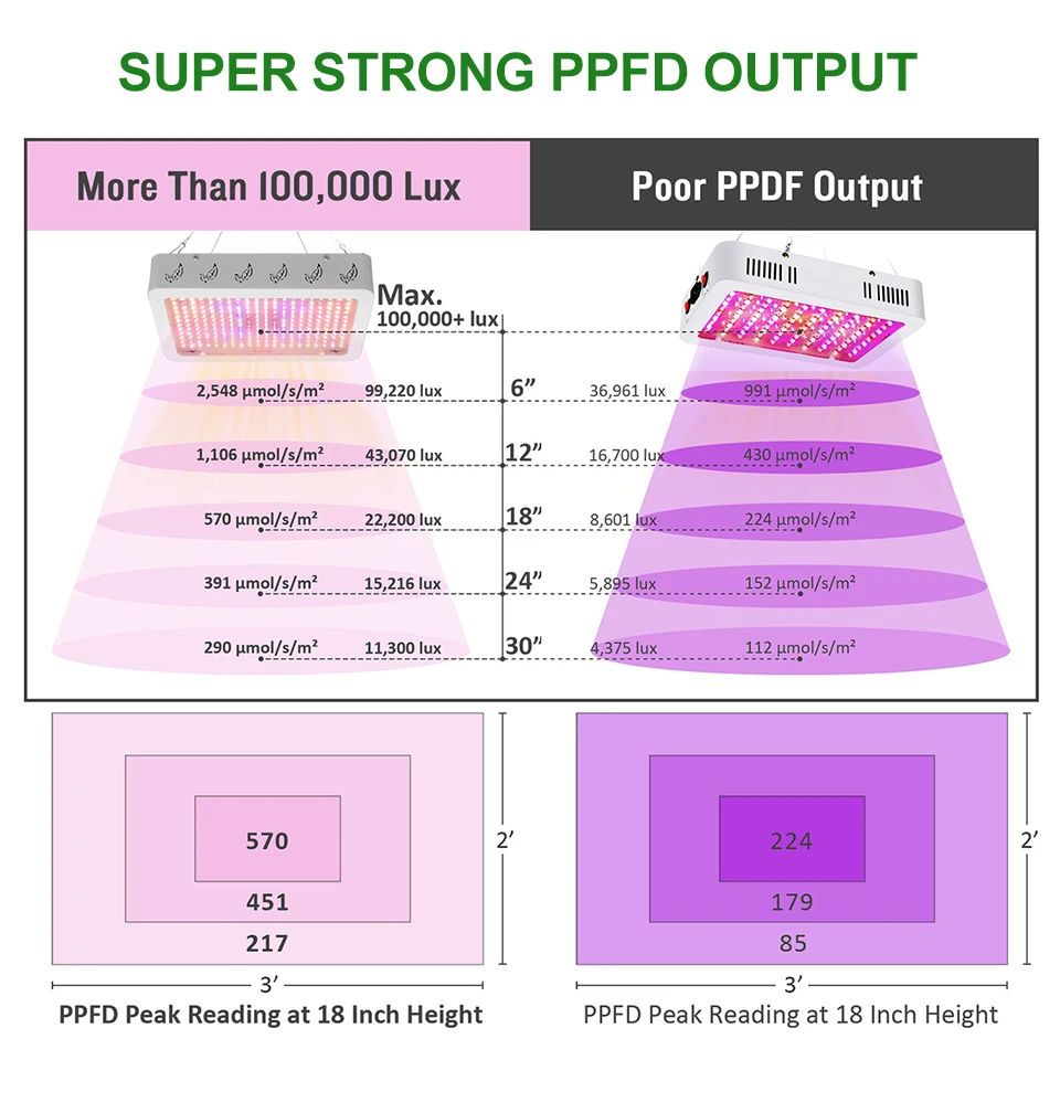 Фитолампа светодиодная полного спектра для выращивания растений, 2000 Вт, 1000 Вт