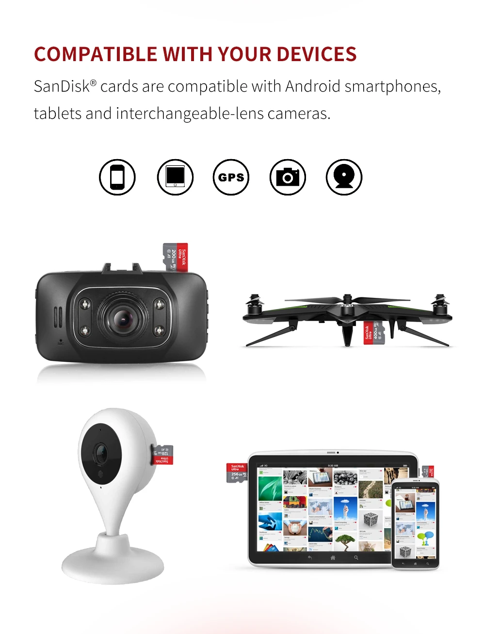 Карта памяти Sandisk 10 шт. оптом Micro SD, карта памяти 256 ГБ 200 ГБ 128 Гб 64 ГБ 32 ГБ 16 ГБ до 98мбс, Micro SD для планшетасмартфона