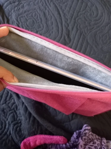 Чехол действительно толстый, внутри шелковистый мех, поэтому он немного очищает ваш дисплей. Очень удобный карман. Я могу спрятать там свою ручку или маленький блокнот внутри.