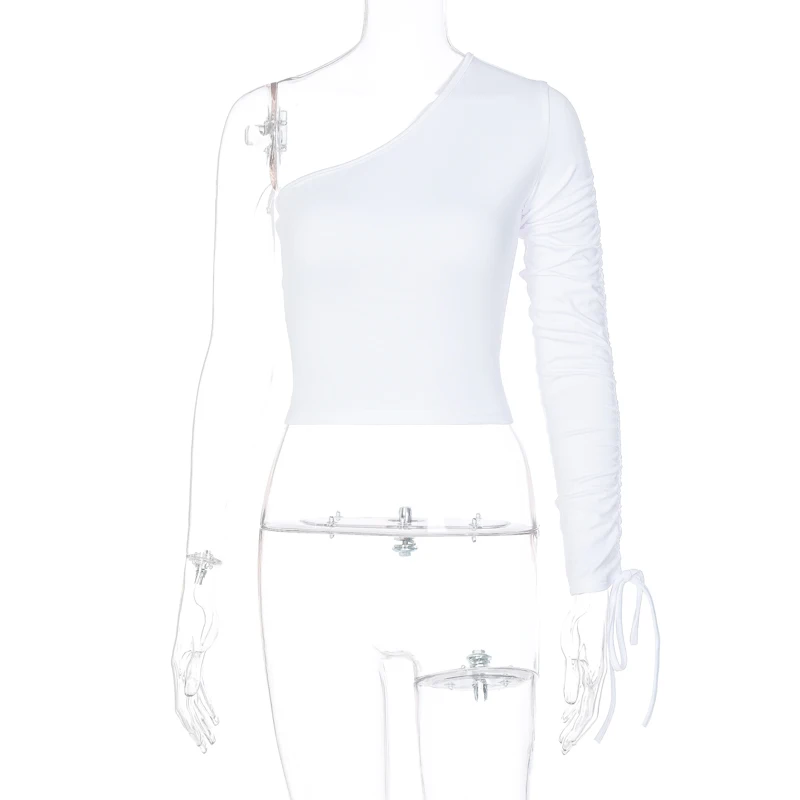 Футболка женская плиссированная, на одно плечо, с длинным рукавом
