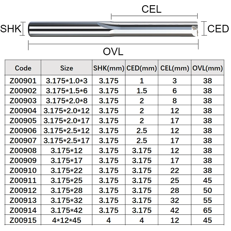 Прямая Концевая фреза Vsharp 3,175, 4, 6, 8, 10 мм, с 2 канавками, фреза из карбида вольфрама с ЧПУ, фреза из твердого дерева, фреза для гравировки МДФ